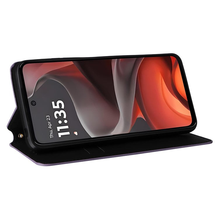 For Motorola Moto G15 Power 4G / G15 4G Wallet Case Rhombus Imprinted Leather Phone Cover - Purple