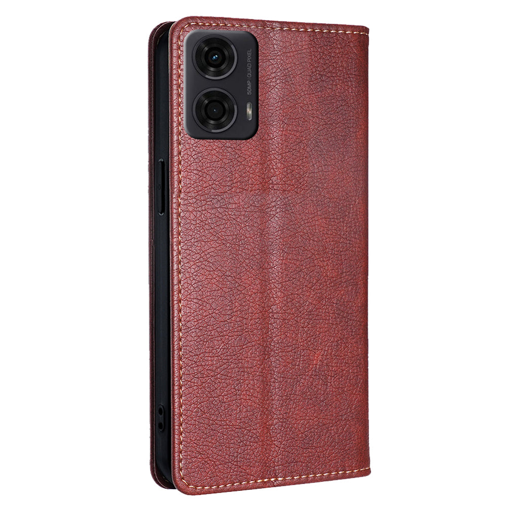 For Motorola Moto G24 4G / G04 4G Phone Case Solid Color Wallet Leather Cover - Brown