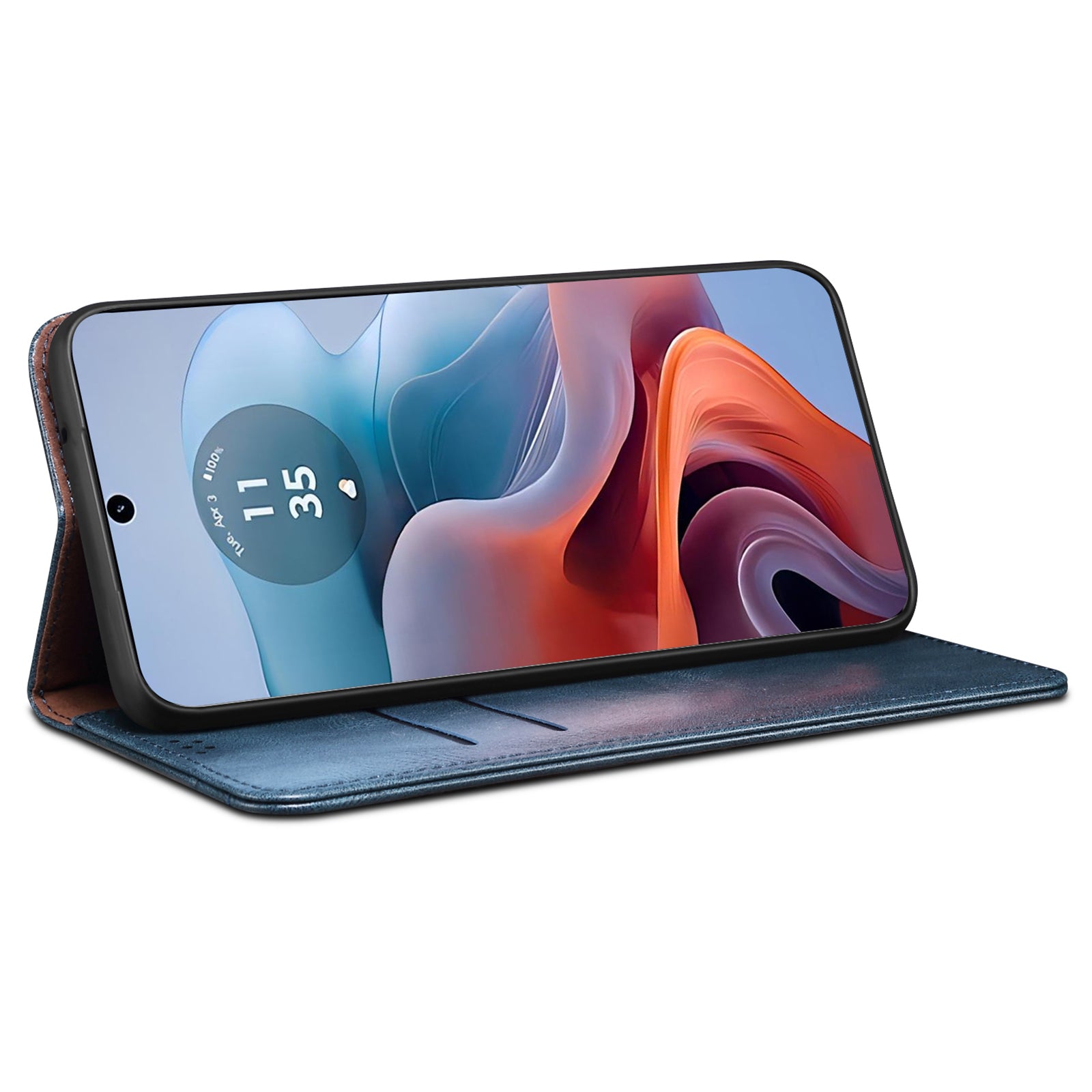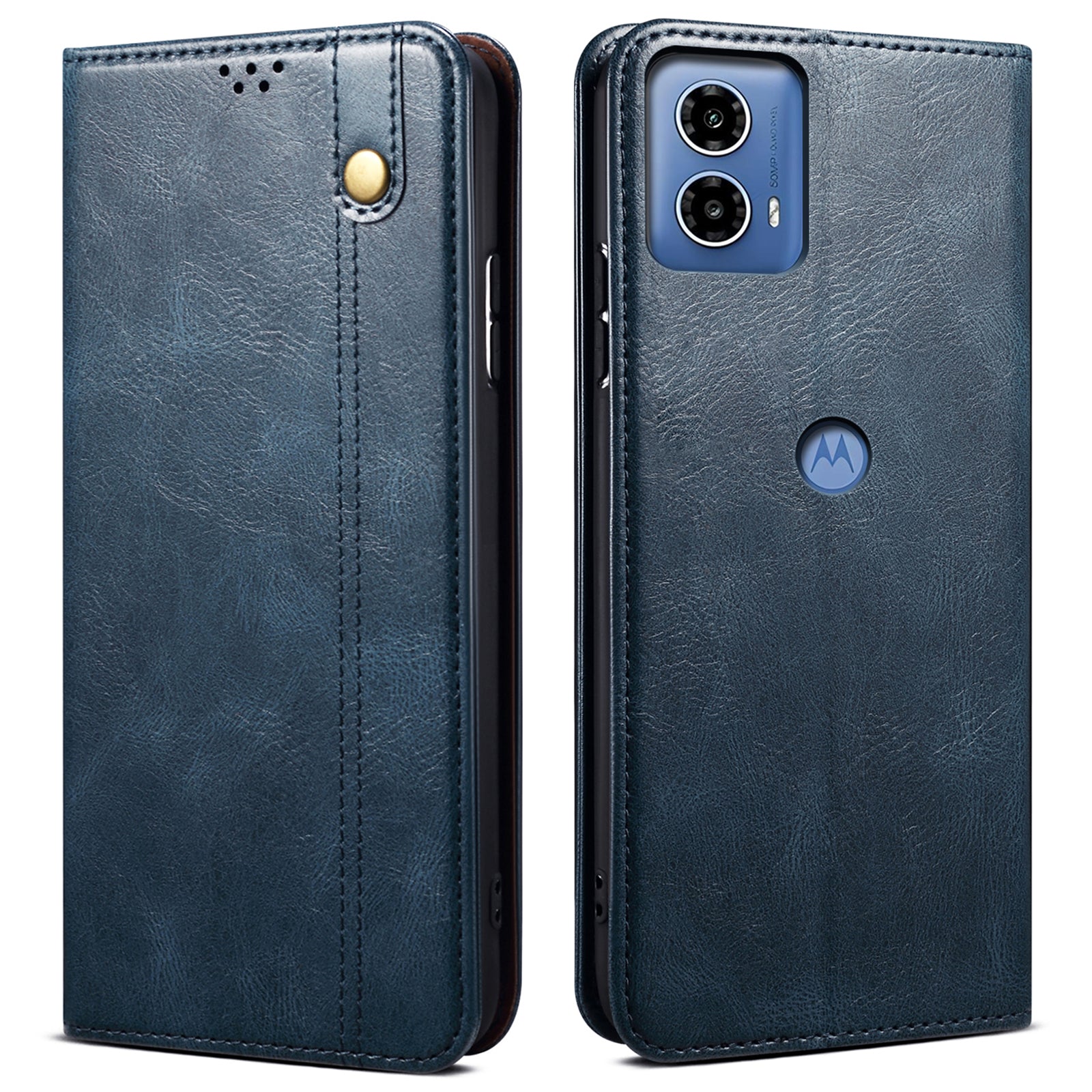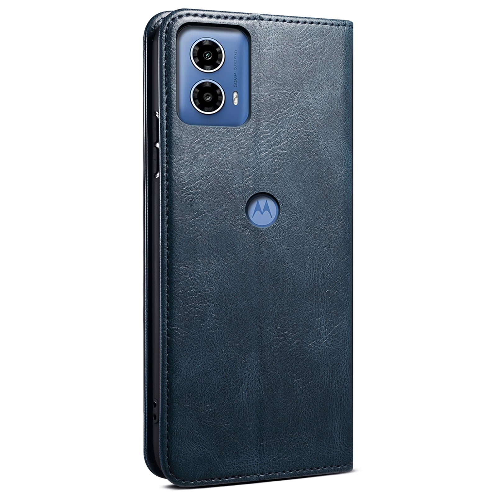 For Motorola Moto G24 Power Magnetic Phone Case Wallet Waxy Crazy Horse Texture Cover - Blue