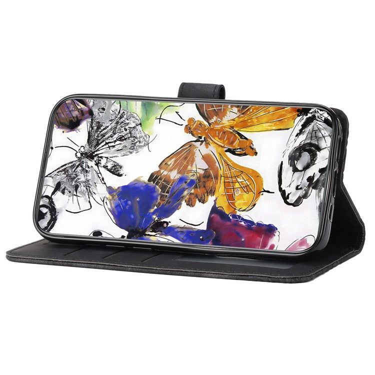 For Motorola Moto G75 5G Case Butterfly Design Flip Wallet Leather Phone Cover Skin-Touch - Black