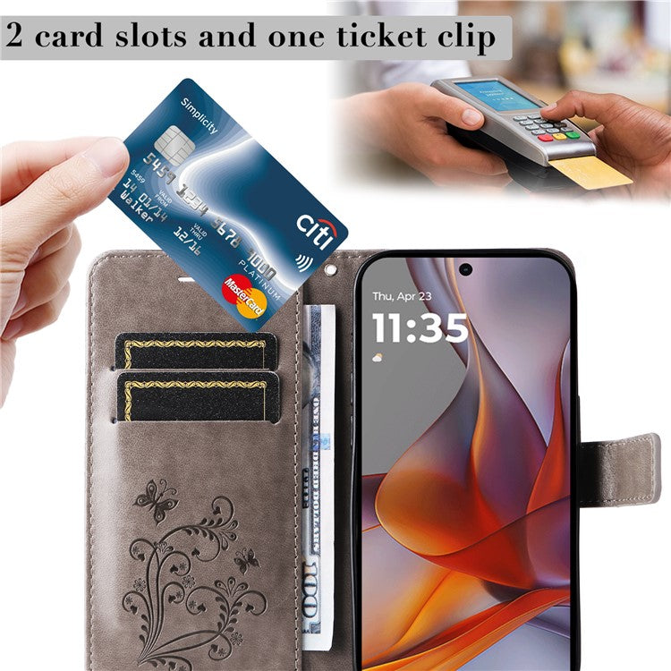 For Motorola Moto G75 5G Case Butterfly Leather Phone Cover - Grey