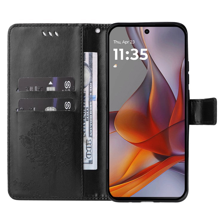 For Motorola Moto G75 5G Case Cat Tree Pattern Flip Leather Phone Cover - Black