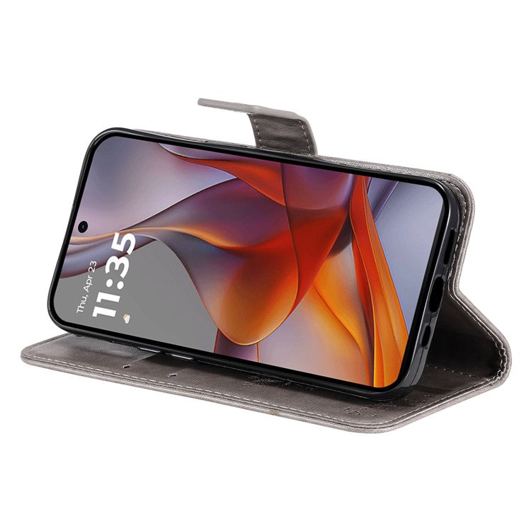 For Motorola Moto G75 5G Case Cat Tree Pattern Flip Leather Phone Cover - Grey