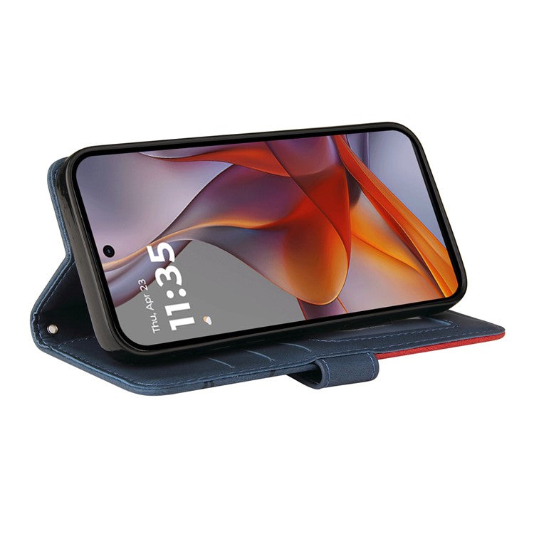 For Motorola Moto G75 5G Case Color Splicing Leather Phone Cover Wallet Stand - Blue