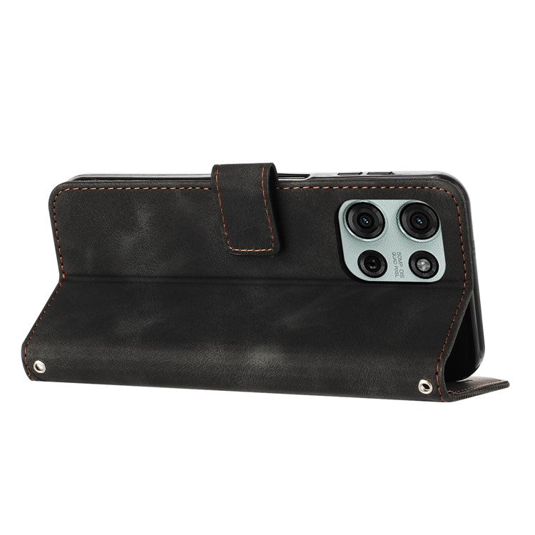 For Motorola Moto G75 5G Case Handbag Imprinted Triangle Leather Phone Cover - Black