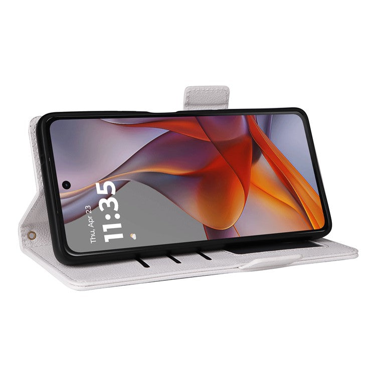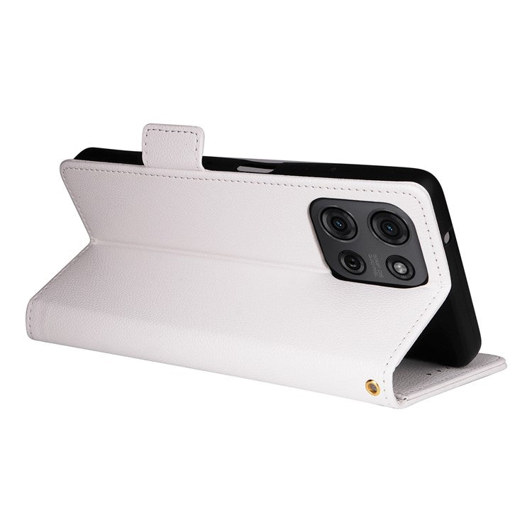 For Motorola Moto G75 5G Case Litchi Texture PU Leather Wallet Flip Phone Cover - White