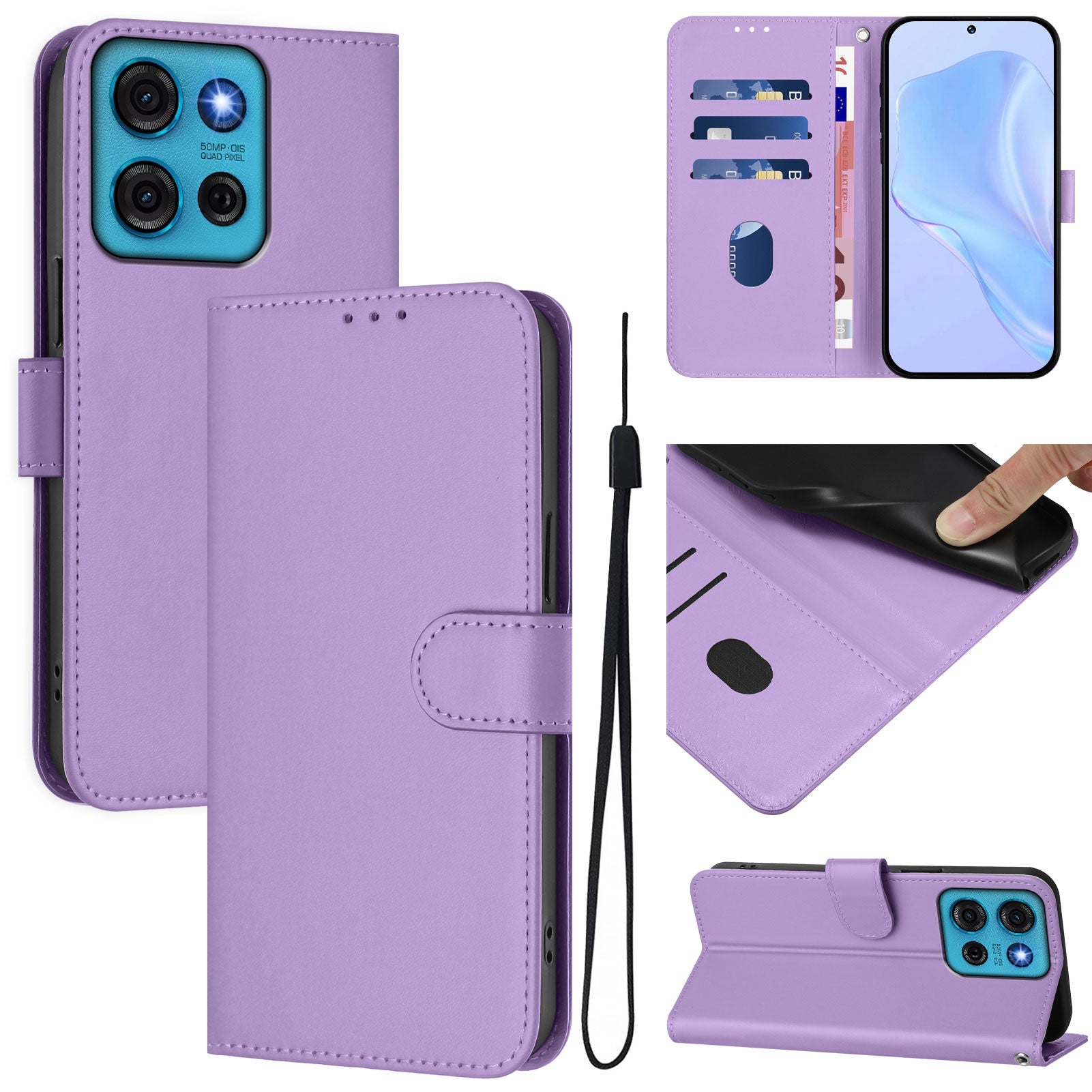 For Motorola Moto G75 5G Case Solid Color Wallet Leather Phone Cover with Strap - Lavender