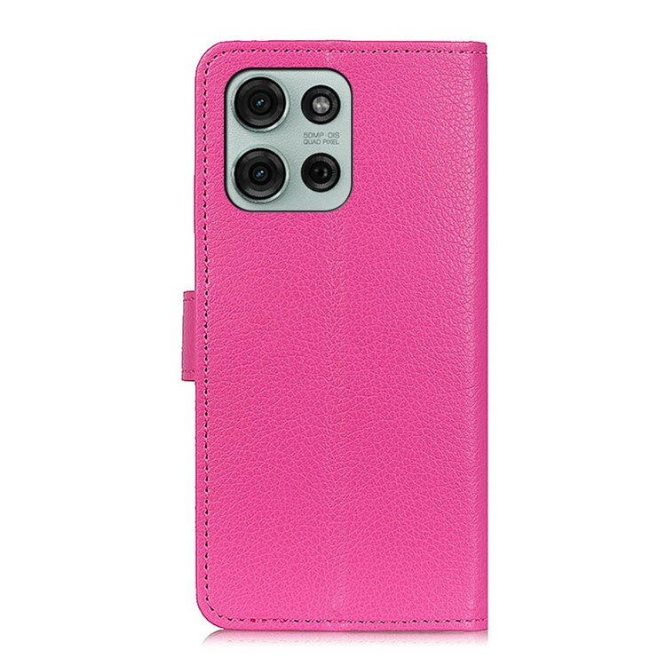 For Motorola Moto G75 5G Wallet Case PU Leather Phone Cover Litchi Texture - Rose