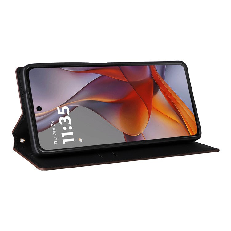For Motorola Moto G75 5G Wallet Case Rhombus Imprinted Leather Phone Cover - Brown