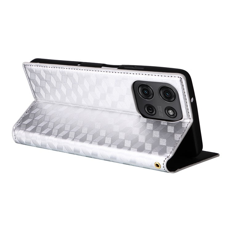 For Motorola Moto G75 5G Wallet Case Rhombus Imprinted Leather Phone Cover - Silver