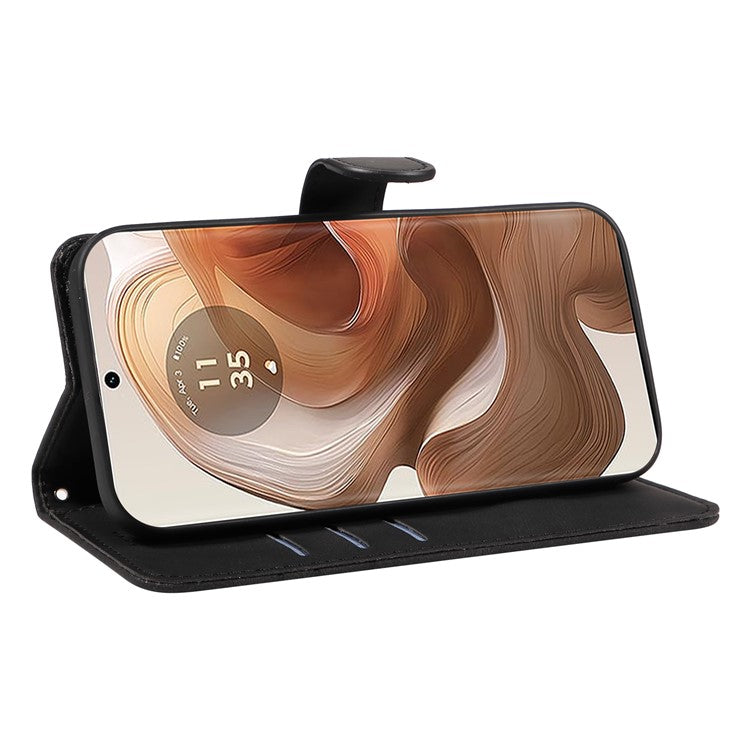 For Motorola Moto X50 Ultra 5G / Edge 50 Ultra 5G Case Curved Line Imprinted Leather Wallet Cover - Black