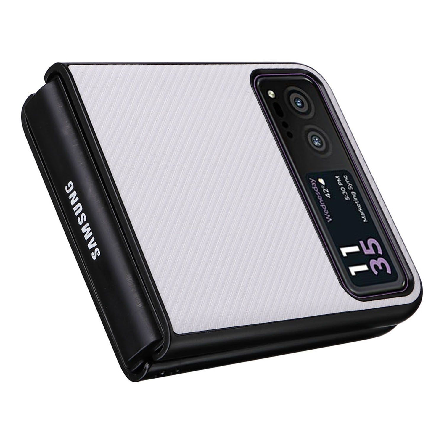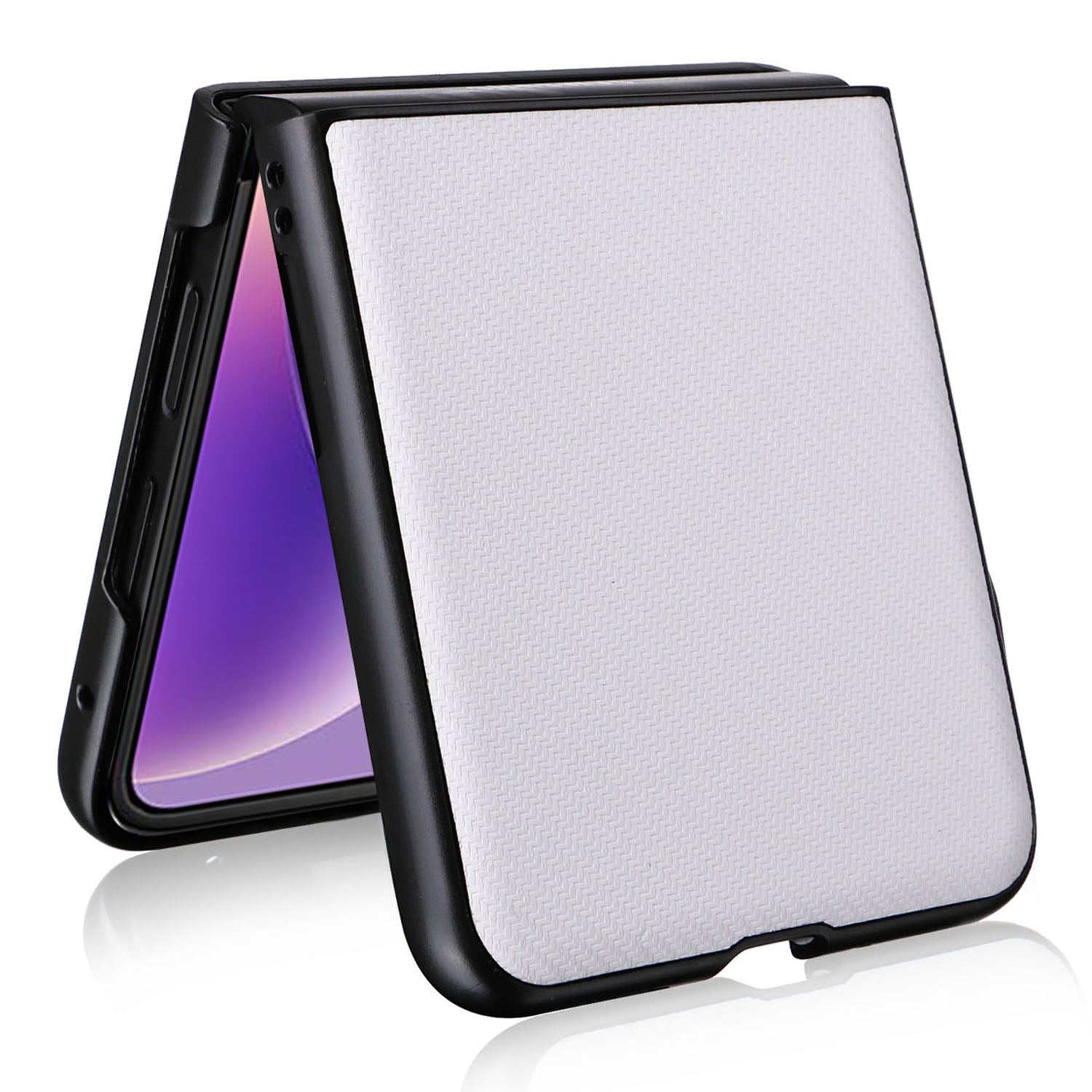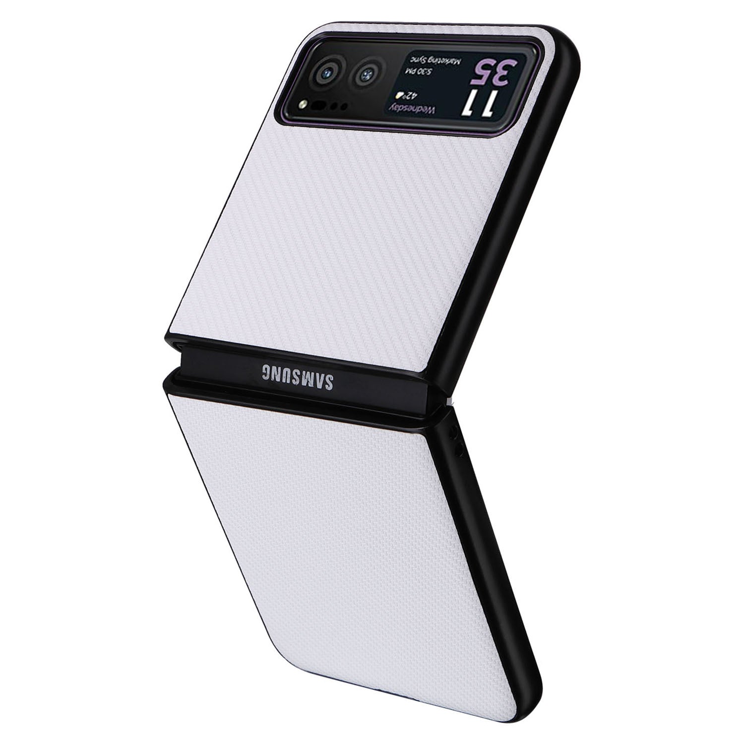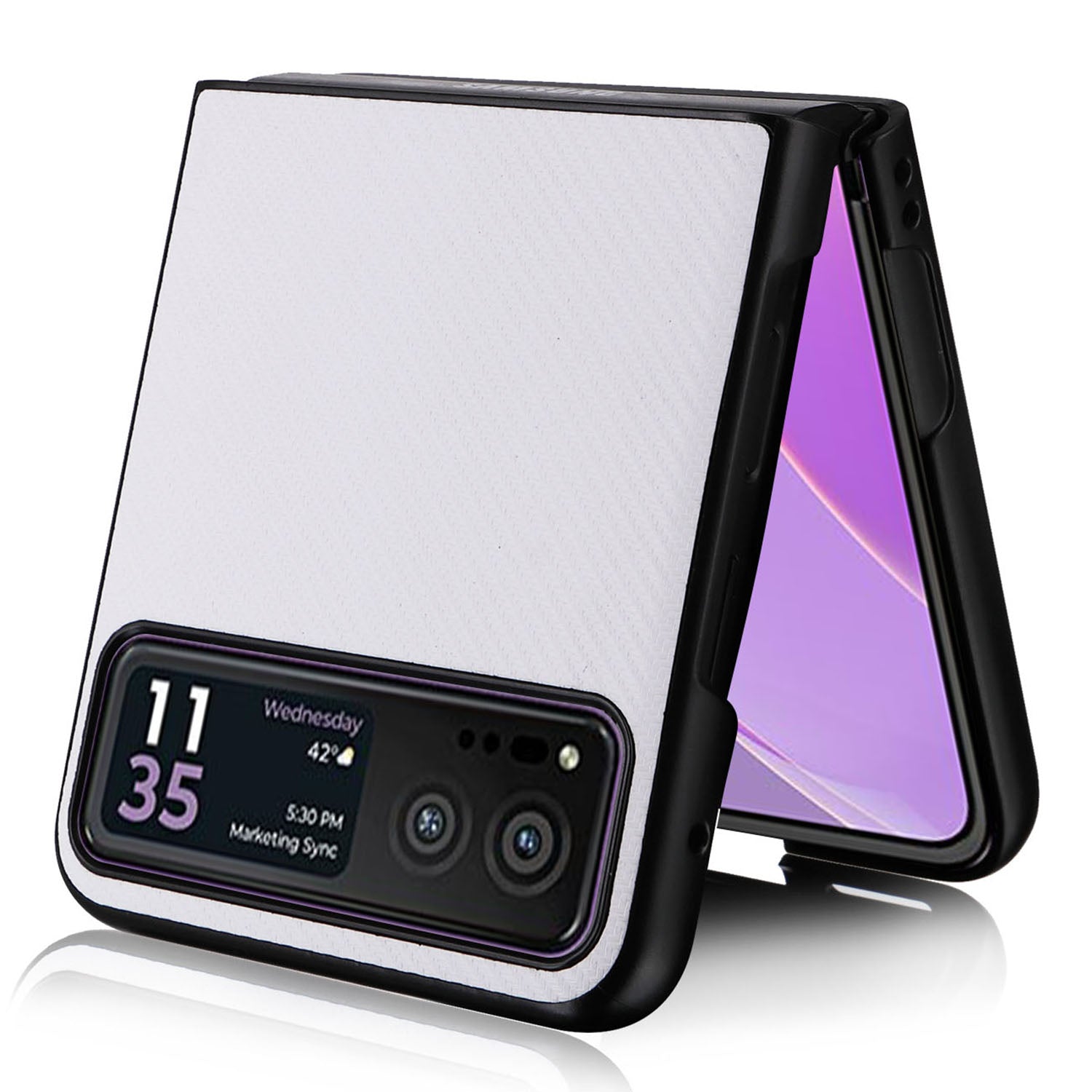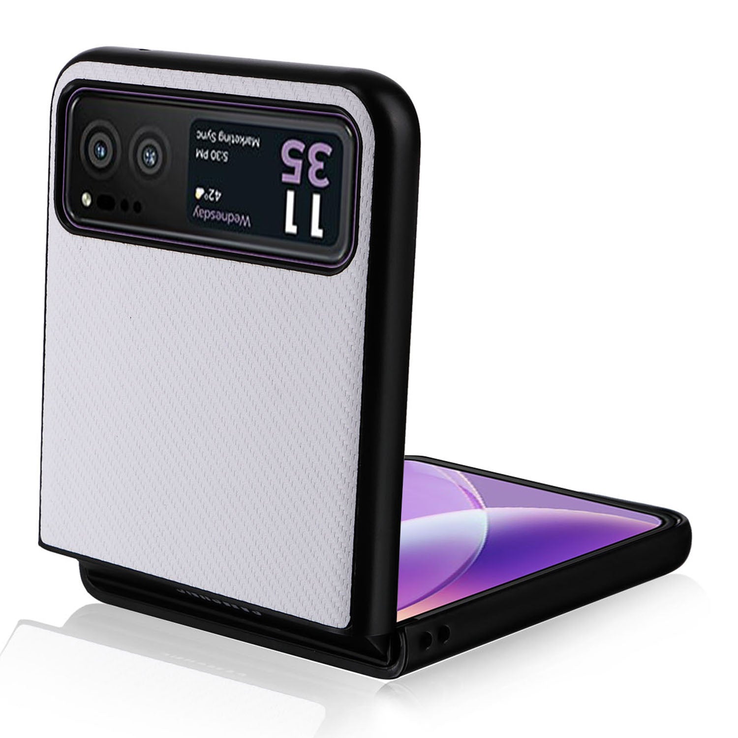 Uniqkart for Motorola Razr 40 5G PU Leather Coated PC Anti-Scratch Phone Case Carbon Fiber Texture Back Cover - White