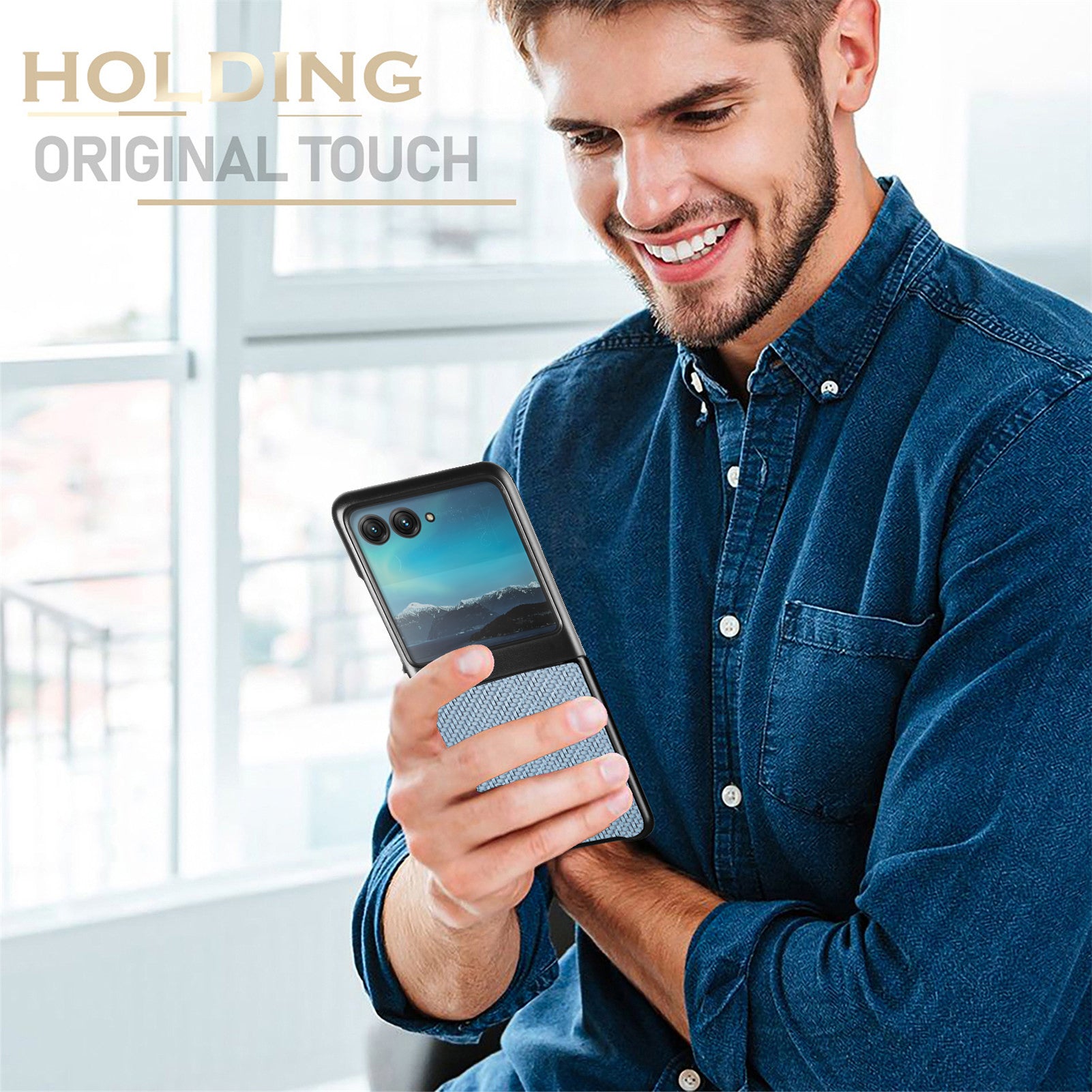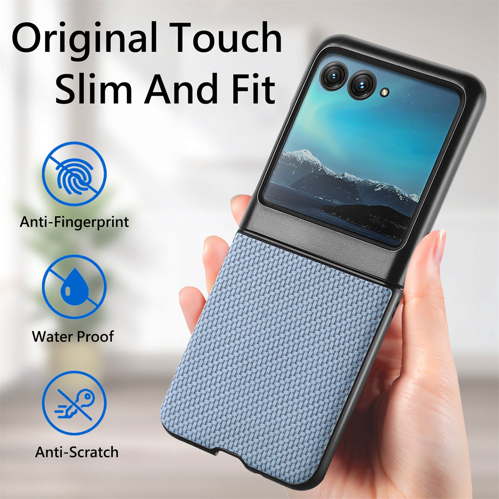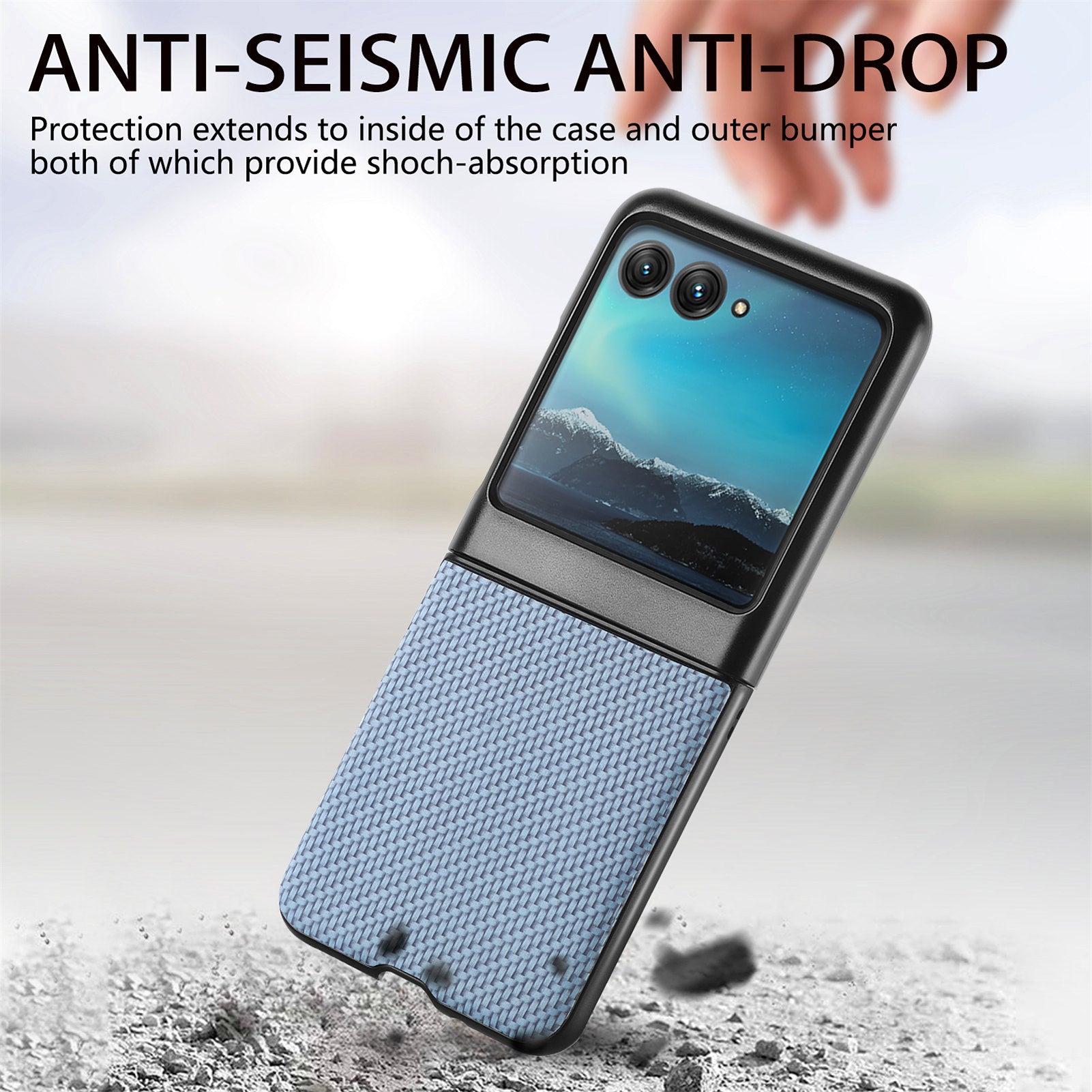 Uniqkart for Motorola Razr 40 Ultra 5G Carbon Fiber Texture Leather Coated PC Cover Anti-drop Phone Case - Blue