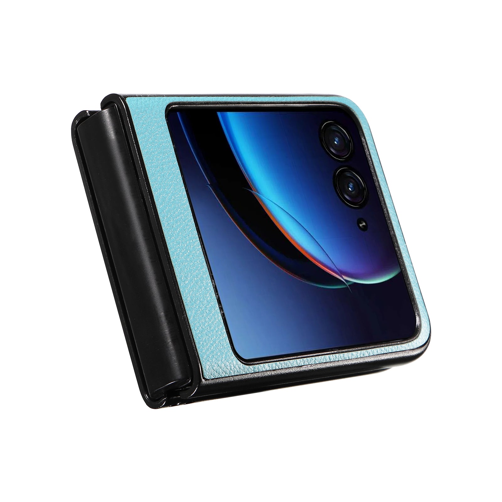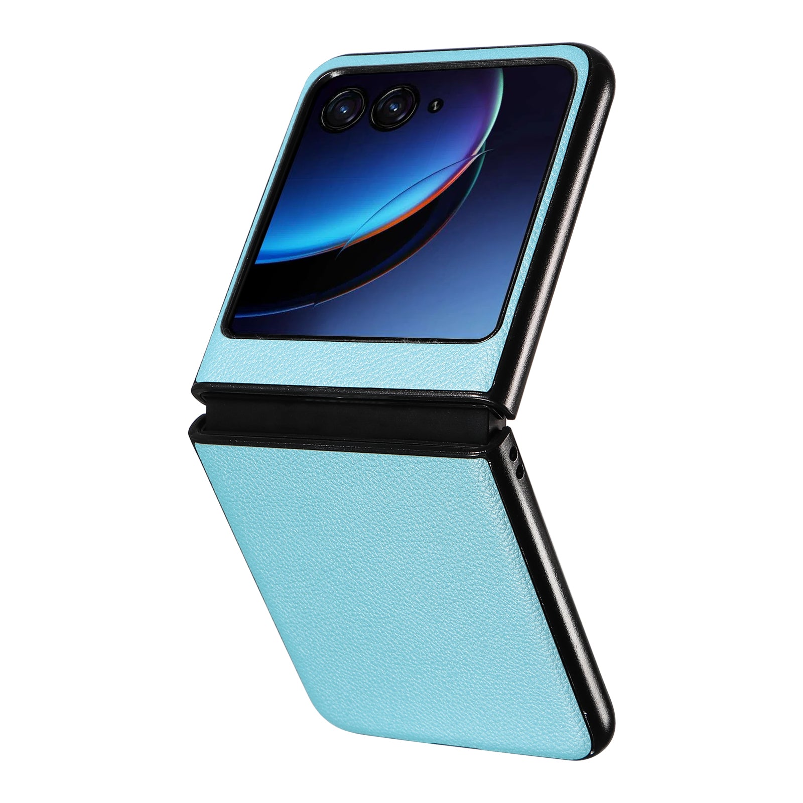 Uniqkart for Motorola Razr 40 Ultra 5G Litchi Texture Phone Case Shockproof Slim PU+PC Cover - Baby Blue