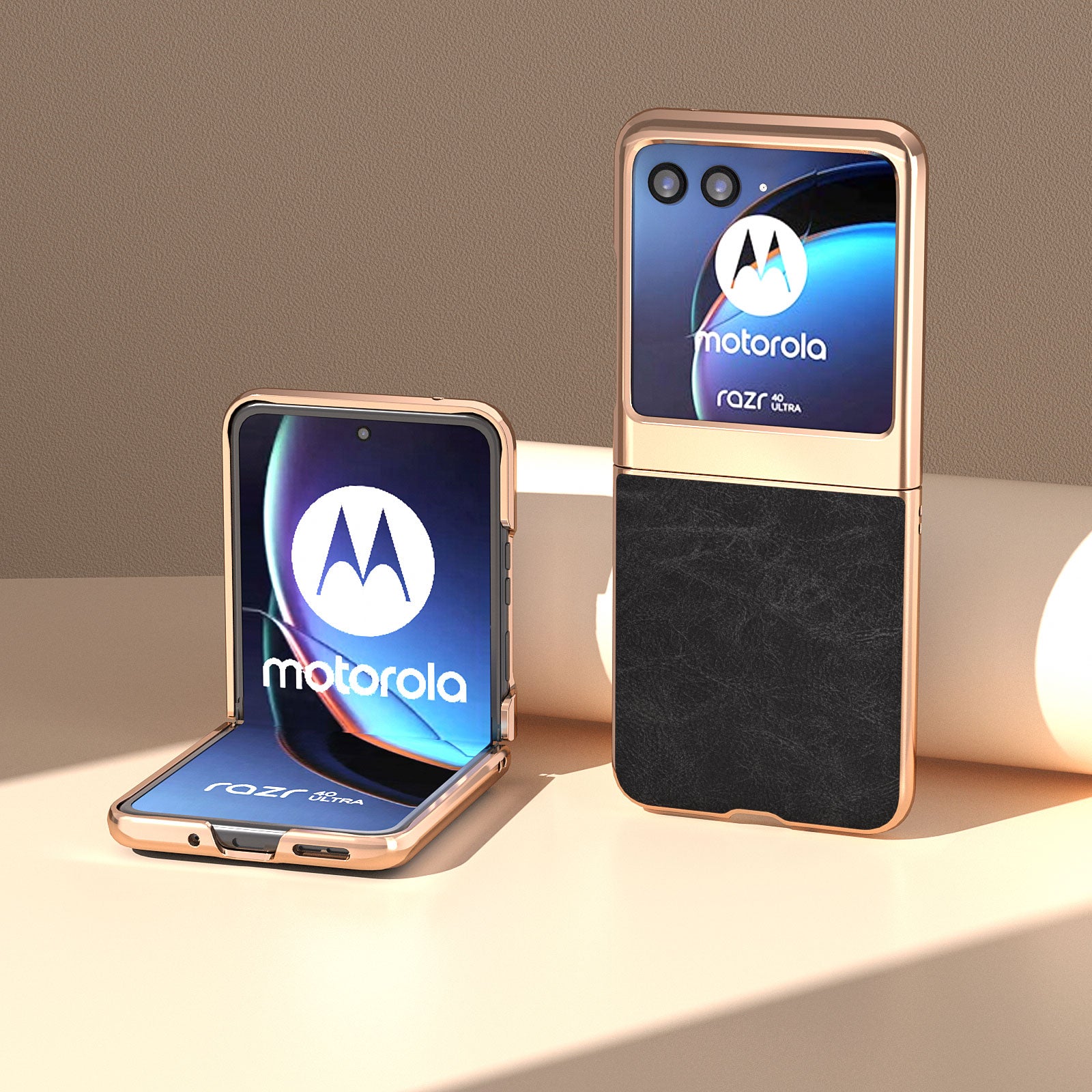 Uniqkart for Motorola Razr 40 Ultra 5G Phone Case Electroplating PU Leather + PC Litchi Texture Cover - Black