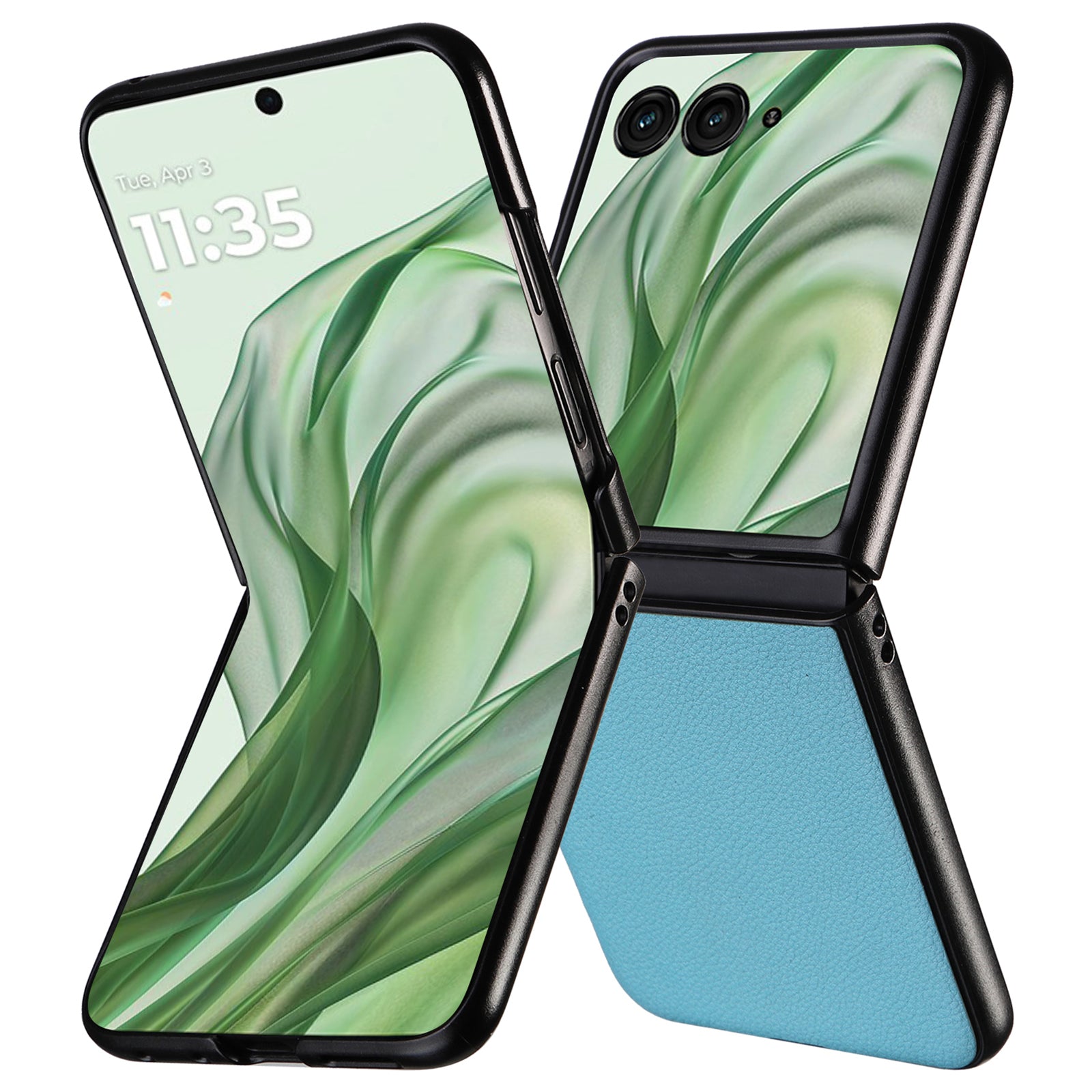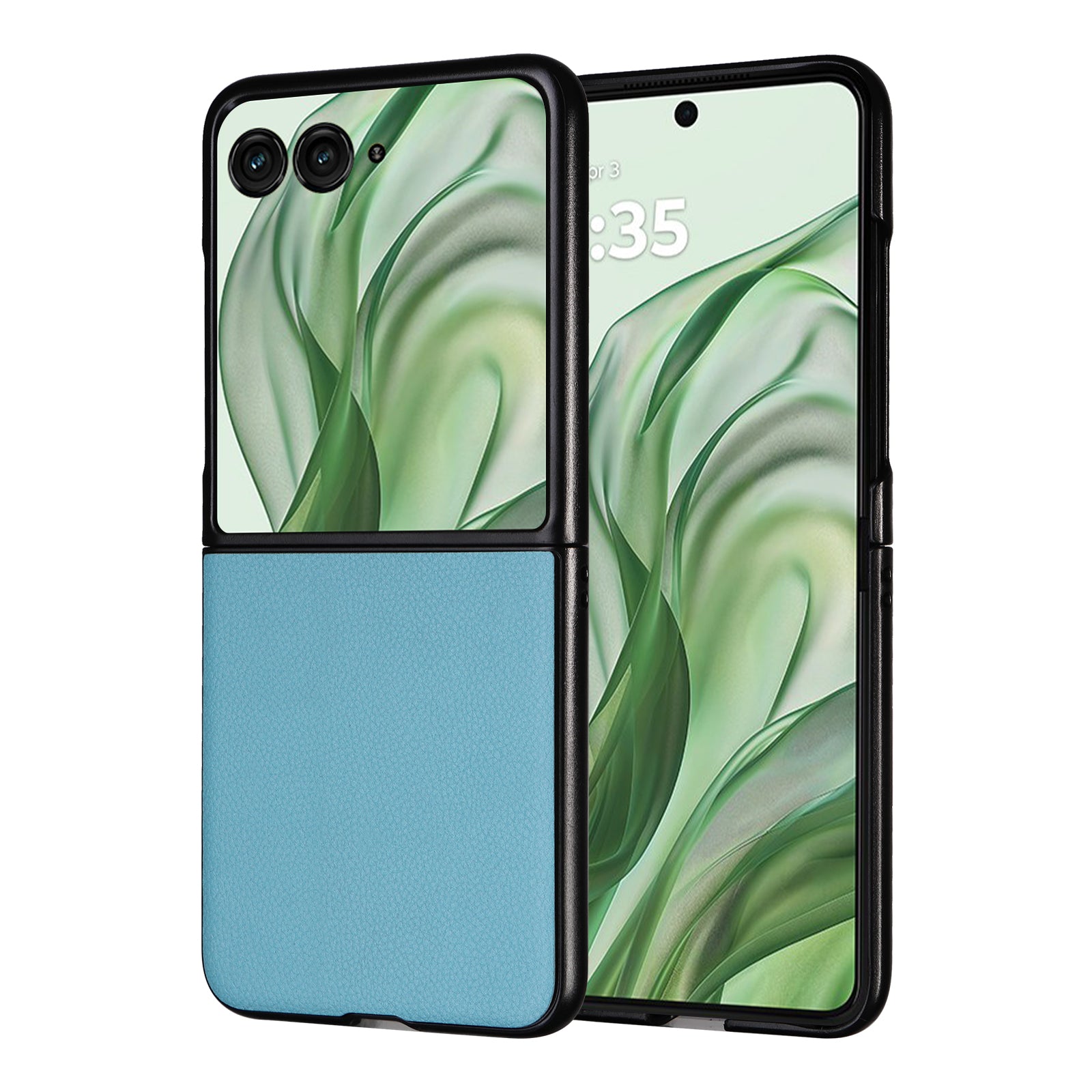 For Motorola Razr 50 Ultra 5G Case Litchi Texture Leather+Hard PC Phone Cover - Baby Blue