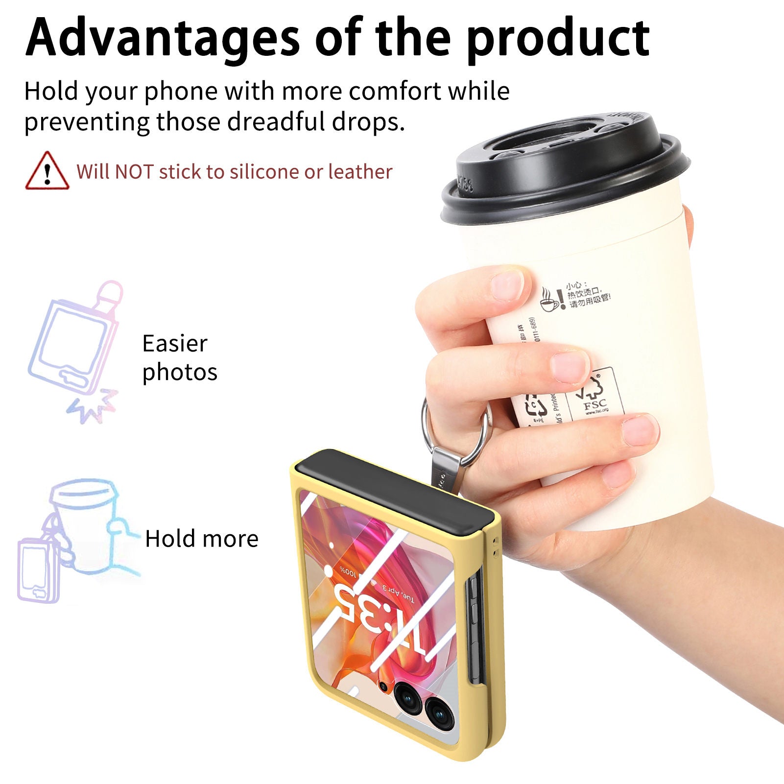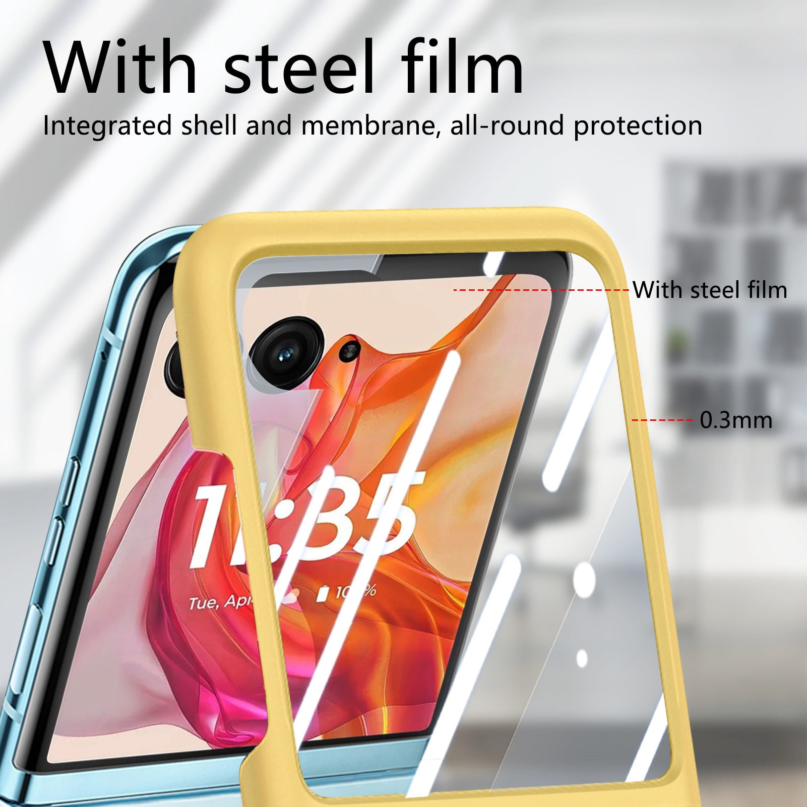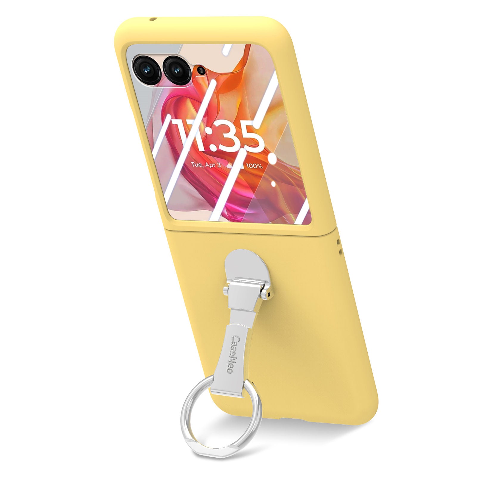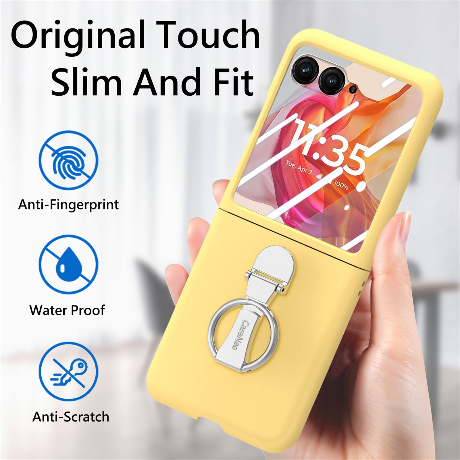 For Motorola Razr 50 Ultra 5G Case Ring Kickstand PC Phone Cover with Tempered Glass Rear Screen Film - Yellow