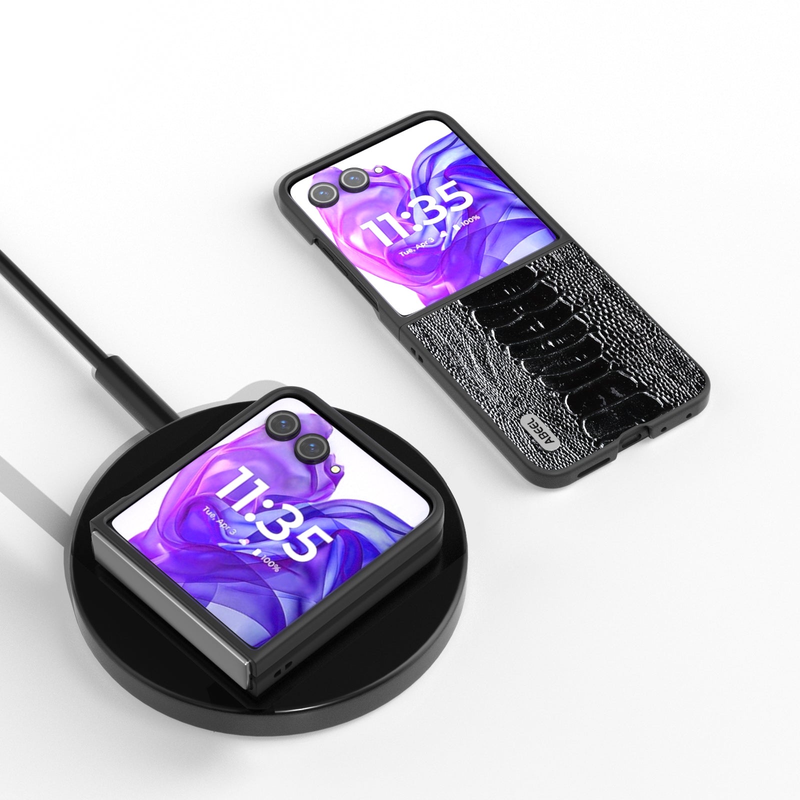 For Motorola Razr 50 Ultra ABEEL Genuine Leather Weilai Series Phone Case(Black)