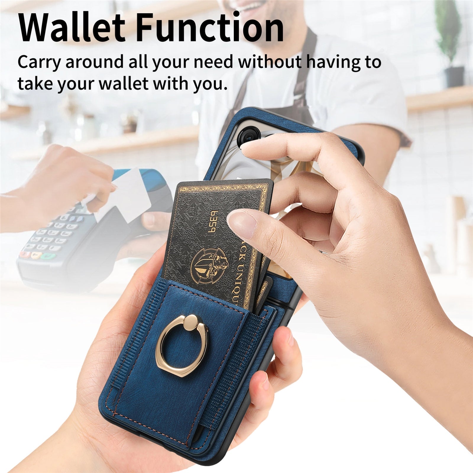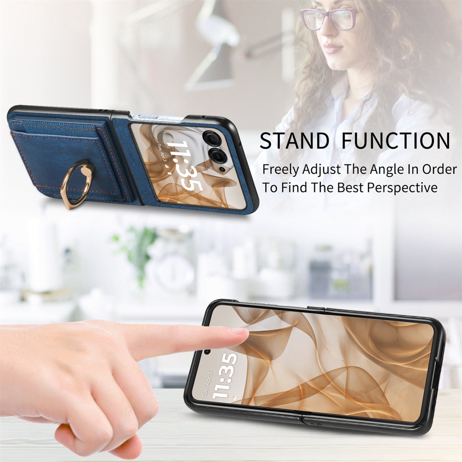 For Motorola Razr 50 Ultra Retro Skin-feel Ring Card Bag Phone Case(Blue)