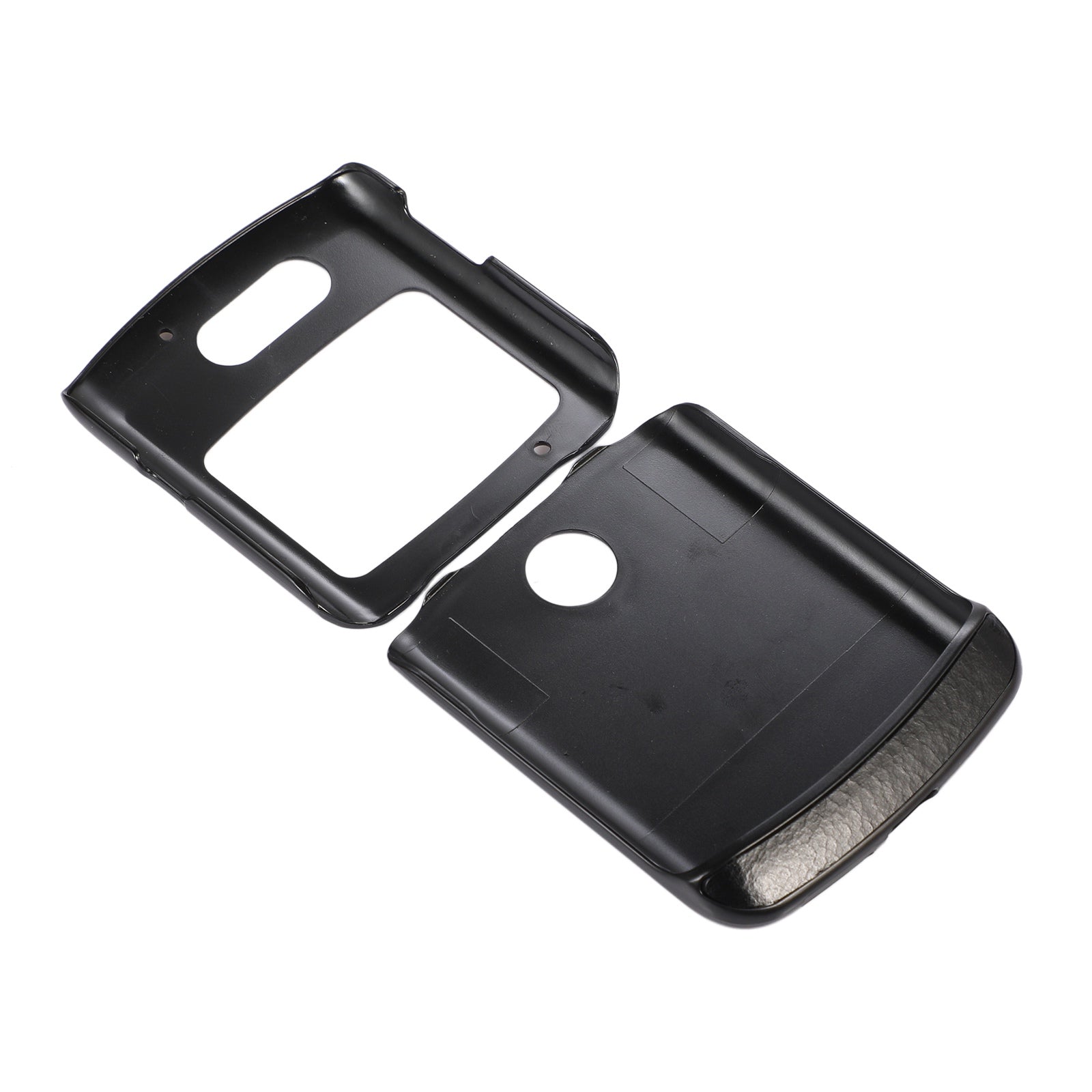 Uniqkart for Motorola Razr 5G 2 Piece Design Phone Case Crazy Horse Texture Genuine Cowhide Leather Coated PC + TPU Cover - Black