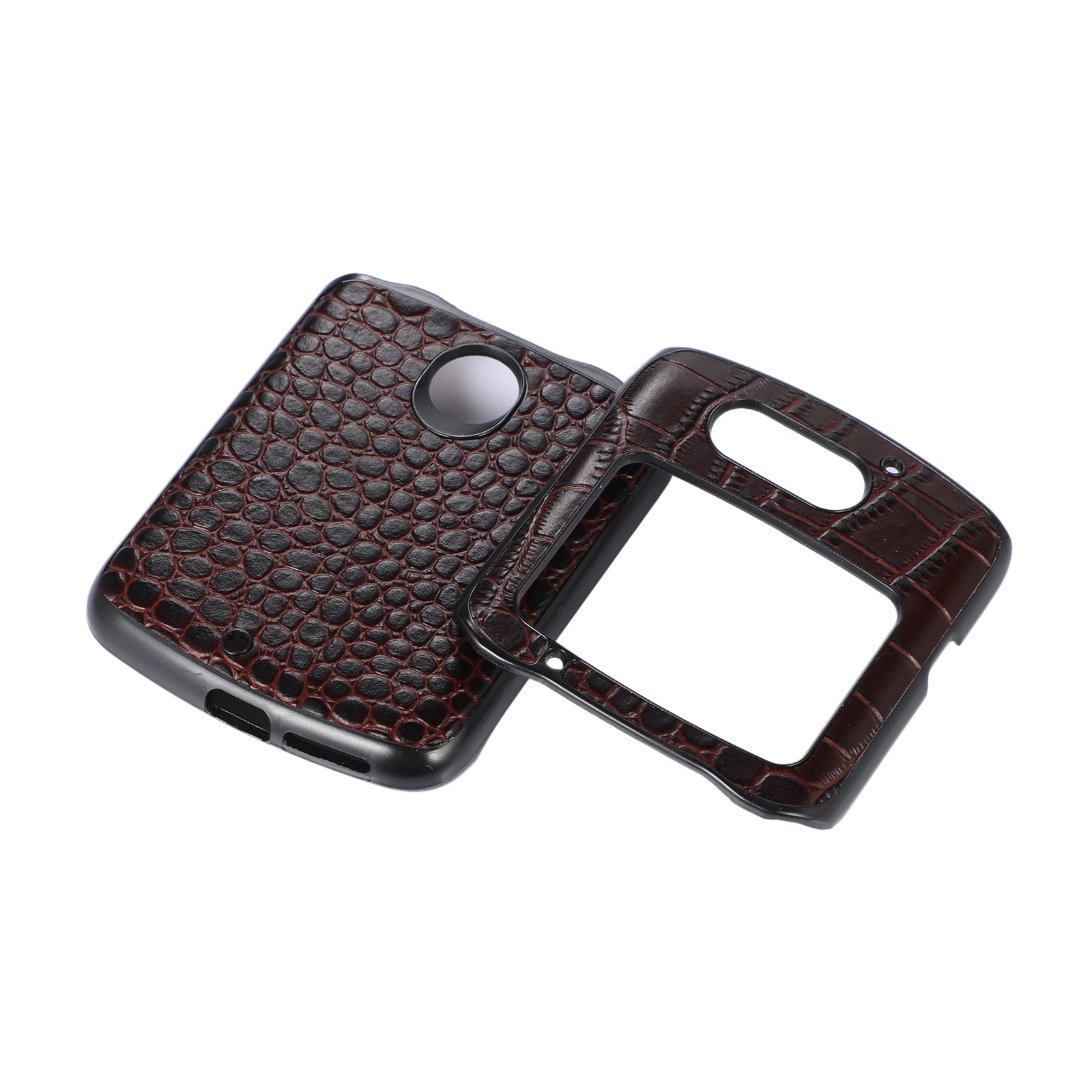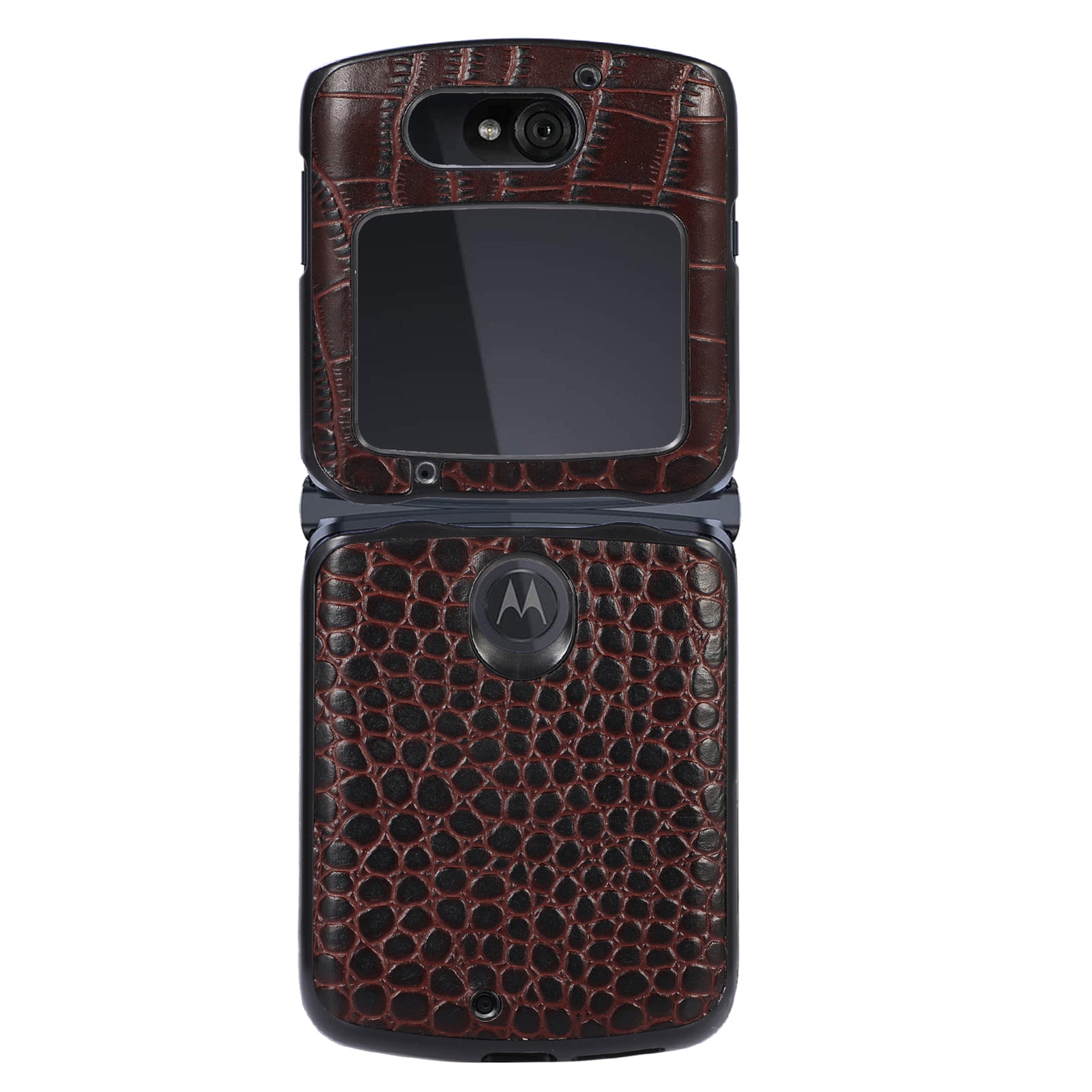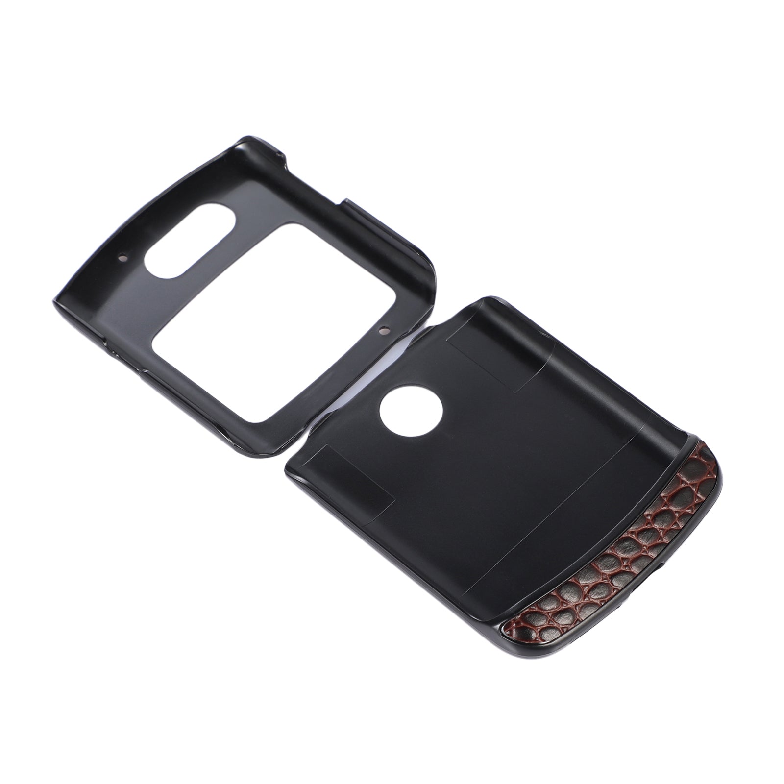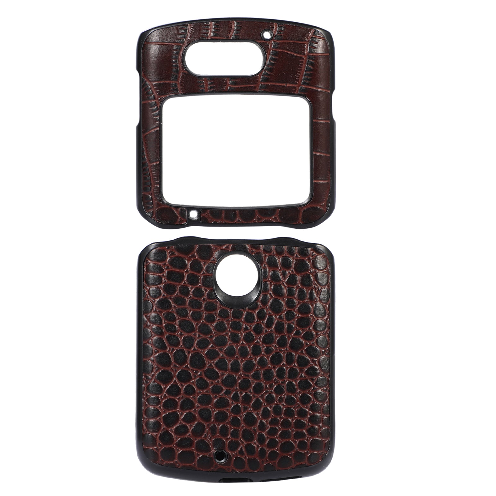 Uniqkart for Motorola Razr 5G Crocodile Texture Genuine Cowhide Leather Coating Phone Case Inner PC + TPU Hybrid Cover - Coffee