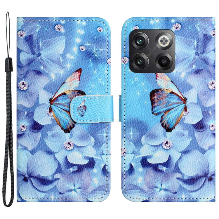 For OnePlus 10T 5G / Ace Pro 5G Adjustable Stand Cross Texture Phone Cover PU Leather 3D Pattern Printing Wallet Style Case with Strap - Flower and Butterfly