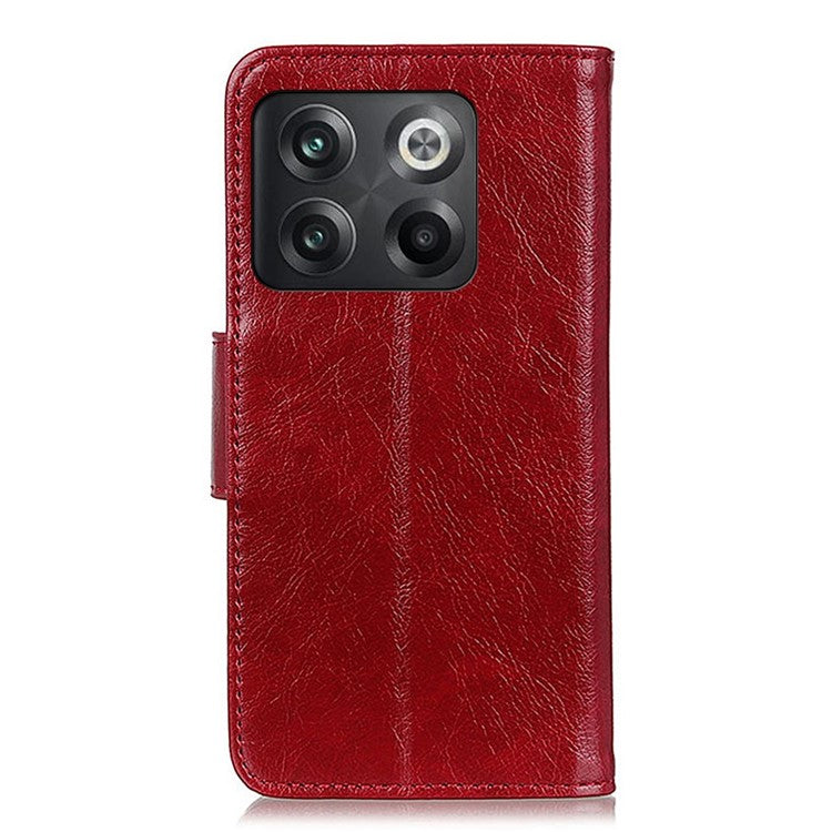 For OnePlus 10T 5G / Ace Pro 5G Anti-scratch Split Leather Flip Case Nappa Texture Magnetic Closure Phone Wallet Cover with Stand - Red