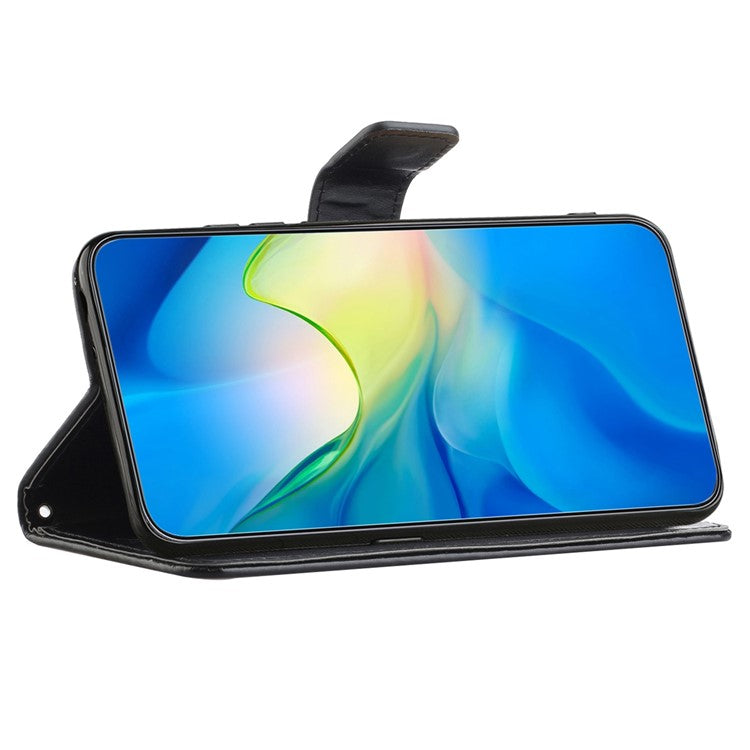 For OnePlus 10T 5G / Ace Pro 5G Butterfly Flower Imprinted Phone Case PU Leather Wallet Cover Stand Shockproof Phone Shell with Strap - Black
