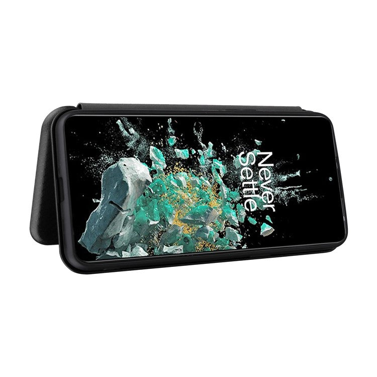 For OnePlus 10T 5G / Ace Pro 5G Carbon Fiber Texture Smartphone Case PU Leather Magnetic Auto-absorbed Stand Card Holder Function Phone Shell - Black