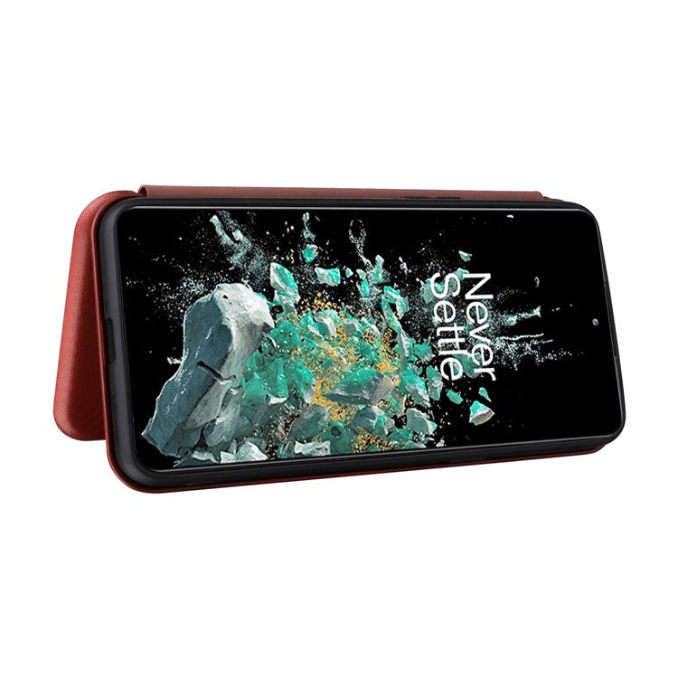 For OnePlus 10T 5G / Ace Pro 5G Carbon Fiber Texture Smartphone Case PU Leather Magnetic Auto-absorbed Stand Card Holder Function Phone Shell - Brown