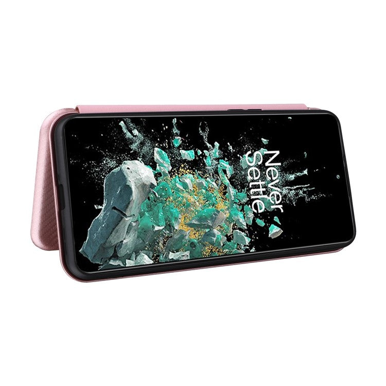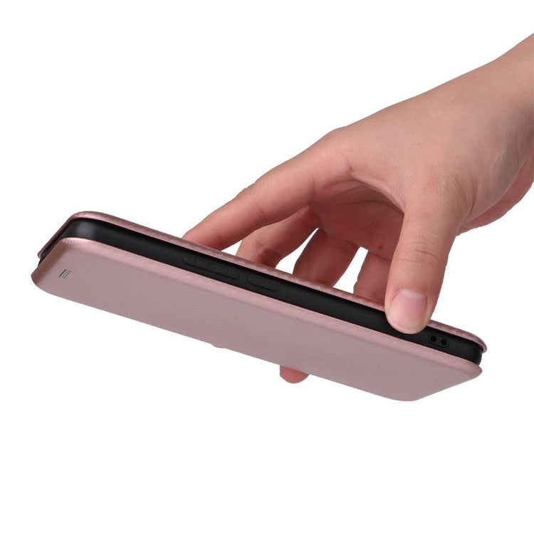 For OnePlus 10T 5G / Ace Pro 5G Carbon Fiber Texture Smartphone Case PU Leather Magnetic Auto-absorbed Stand Card Holder Function Phone Shell - Rose Gold