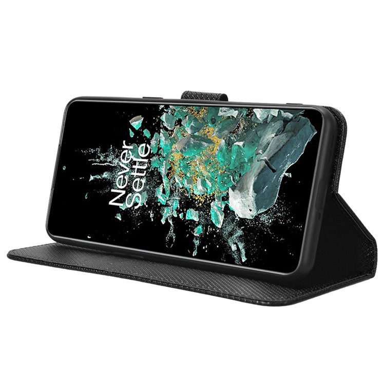 For OnePlus 10T 5G / Ace Pro 5G Diamond Texture Collision Resistant Phone Shell Magnetic Clasp PU Leather Stand Wallet Case with Wrist Strap - Black