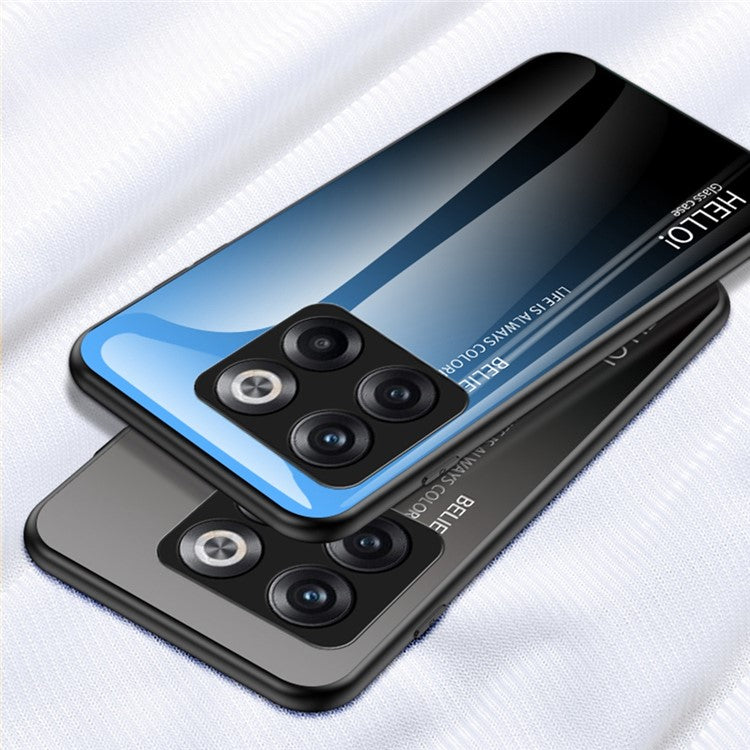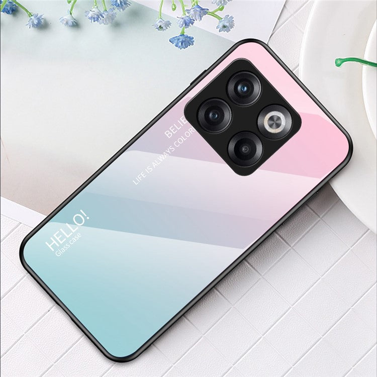For OnePlus 10T 5G / Ace Pro 5G Gradient Color Tempered Glass Phone Case Hard PC Soft TPU Shockproof Defender Back Cover - Gradient Pink Blue