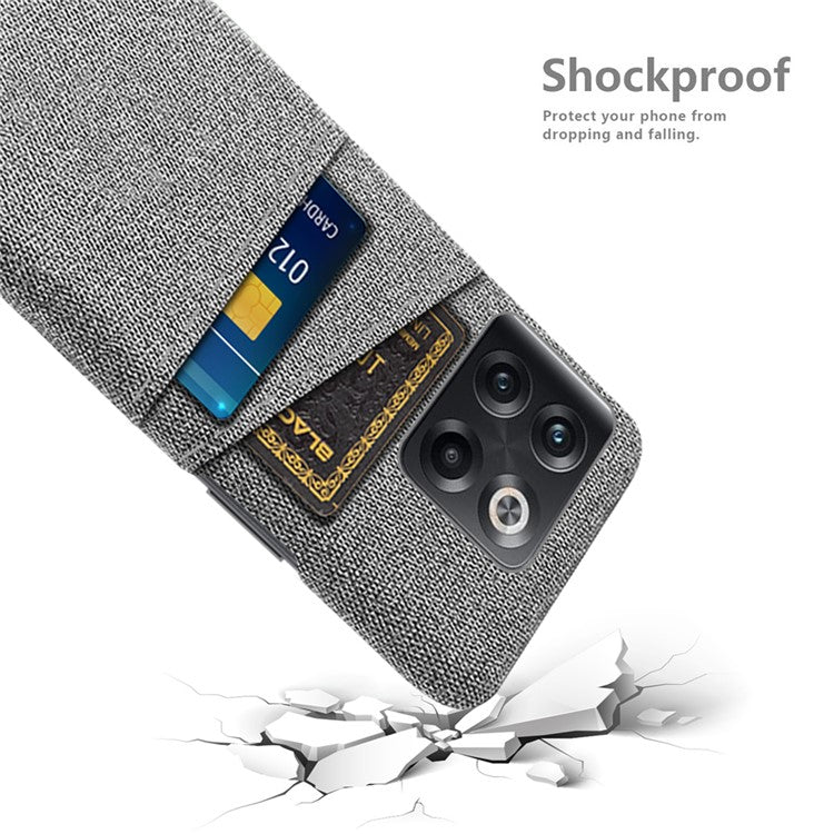 For OnePlus 10T 5G / Ace Pro 5G Hard PC Phone Case Dual Card Holder Cloth Texture Smartphone Phone Cover - Light Grey