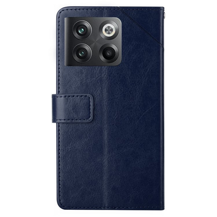 For OnePlus 10T 5G / Ace Pro 5G HT01 PU Leather Wallet Stand Case Imprinted Y-Shaped Lines Well-protected Phone Cover - Blue