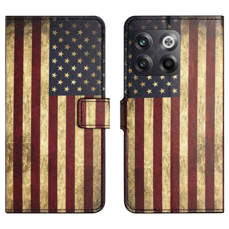 For OnePlus 10T 5G / Ace Pro 5G Pattern Printing Magnetic PU Leather Case Stand Wallet Function Anti-wear Shell - The American Flag