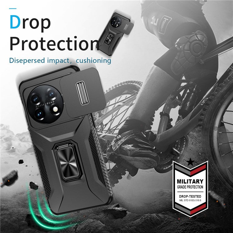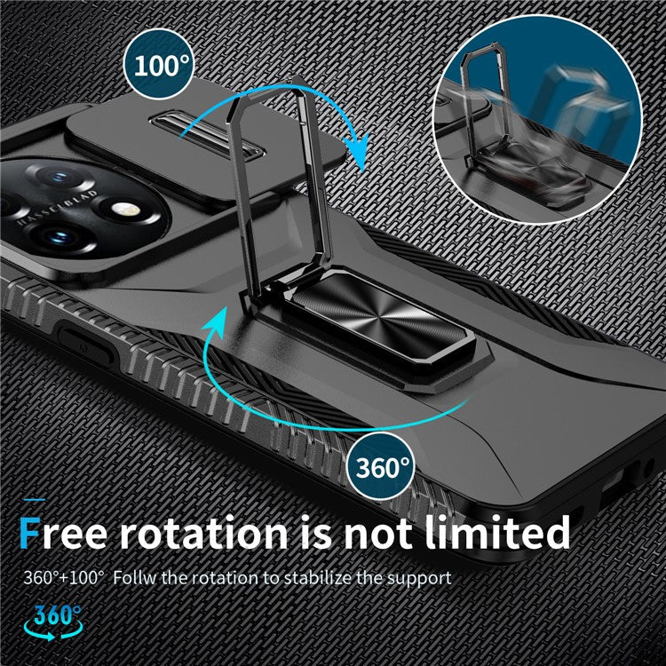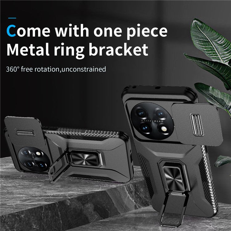 For OnePlus 11 5G Case TPU+PC Ring Kickstand Lens Lid Phone Cover - Black