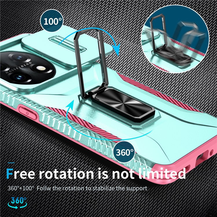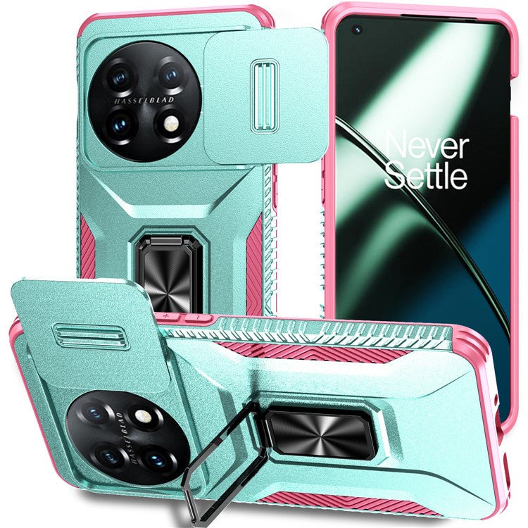 For OnePlus 11 5G Case TPU+PC Ring Kickstand Lens Lid Phone Cover - Grey Green+Pink