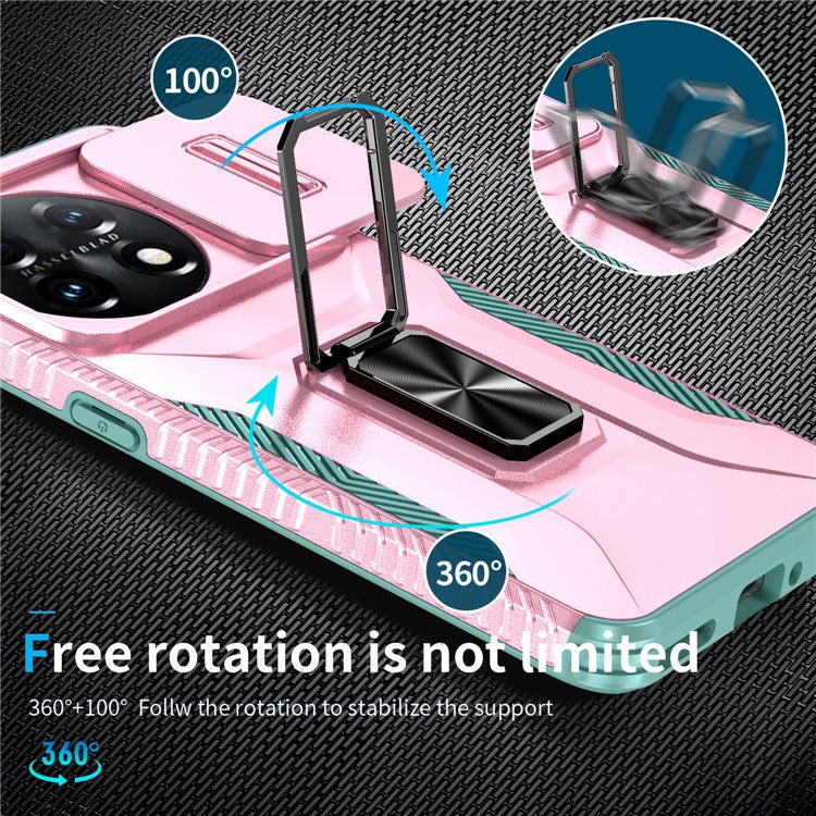 For OnePlus 11 5G Case TPU+PC Ring Kickstand Lens Lid Phone Cover - Pink+Grey Green