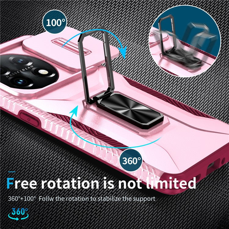 For OnePlus 11 5G Case TPU+PC Ring Kickstand Lens Lid Phone Cover - Pink+Wine Red