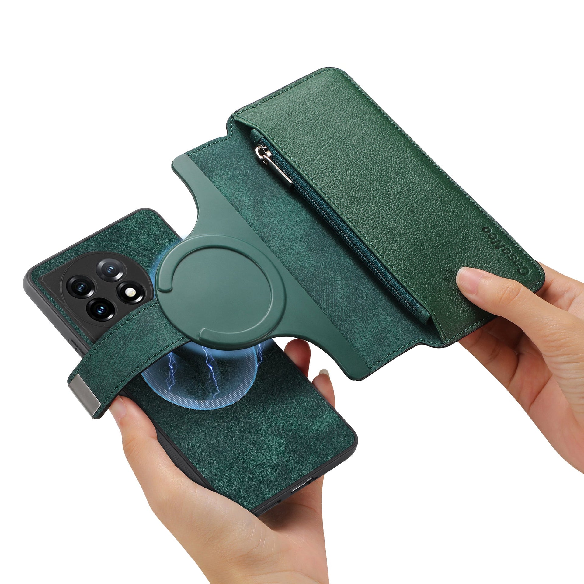 For OnePlus 11 5G CASENEO MW-02 Detachable Magnetic Leather Wallet Phone Cover - Green