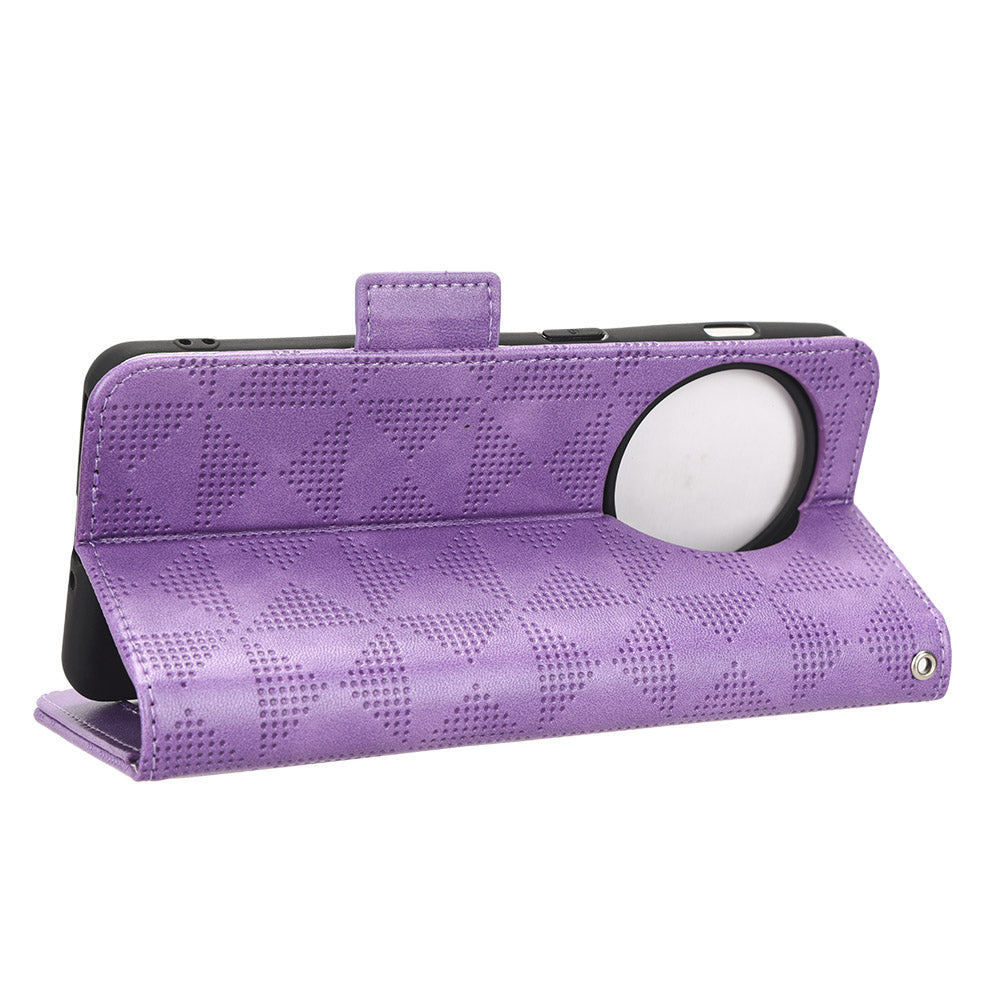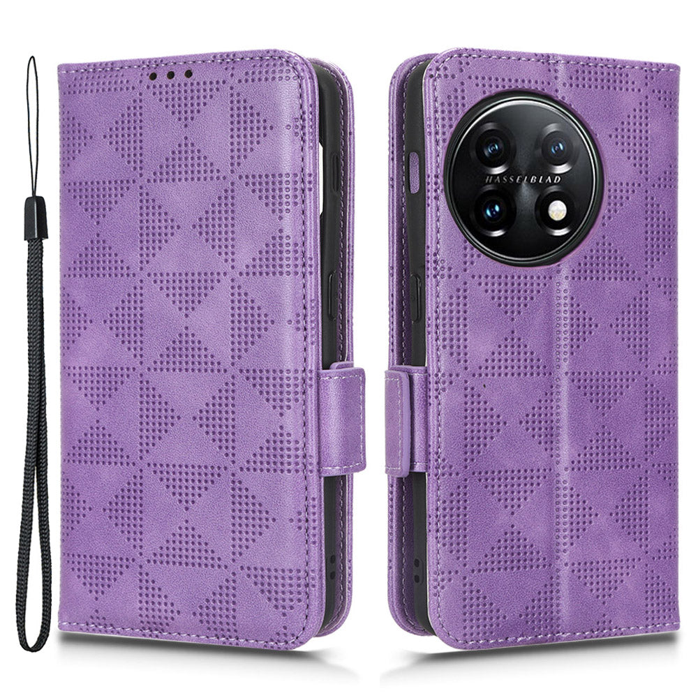 For OnePlus 11 5G Cell Phone Case Imprinted Triangle Pattern Phone Cover PU Leather Wallet with Wrist Strap - Purple