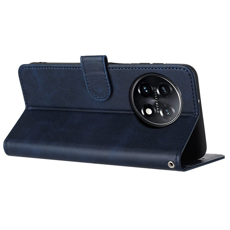 For OnePlus 11 5G Phone Shell Calf Texture PU Leather+TPU Protective Cover with Wrist Strap - Sapphire