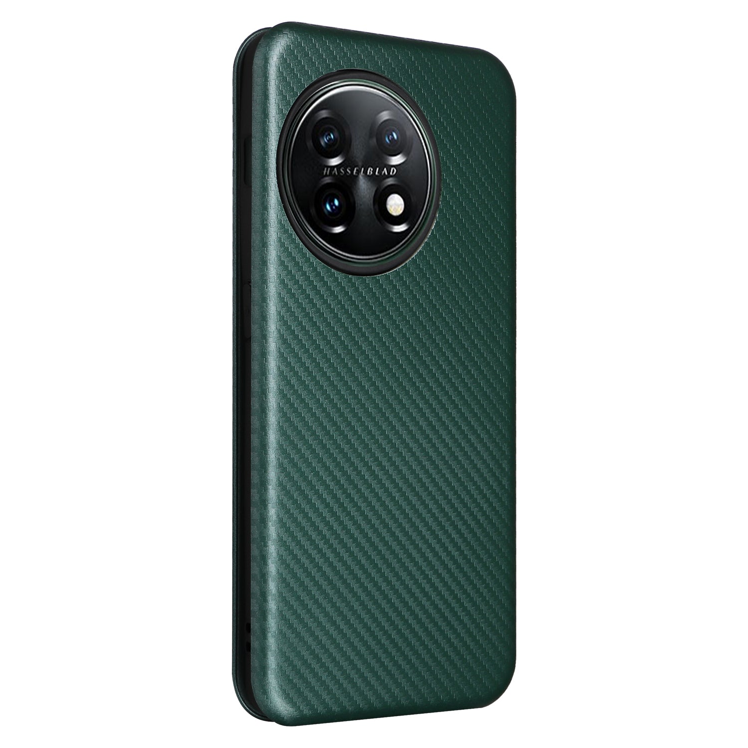 For OnePlus 11 5G PU Leather Stand Card Slots Case Carbon Fiber Texture Magnetic Auto-absorbed Folio Phone Cover - Green