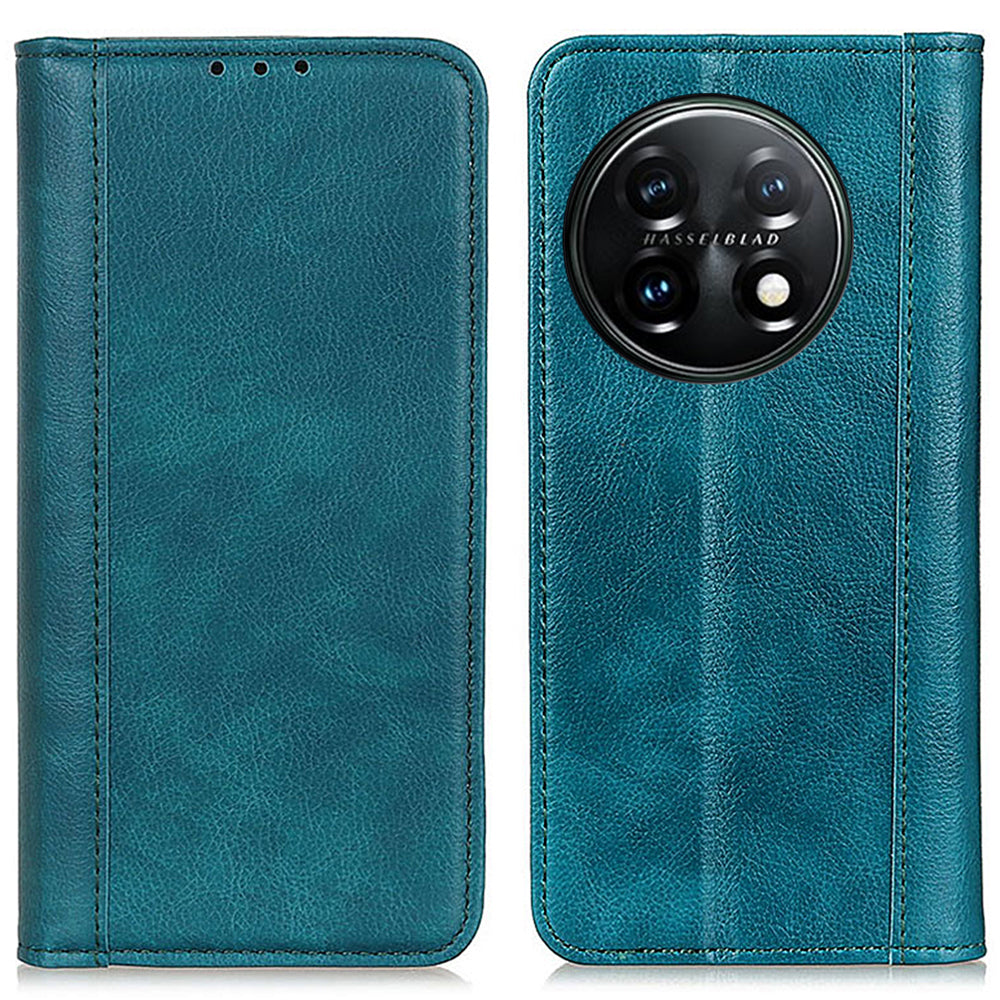 For OnePlus 11 5G Split Leather Stand Phone Case Litchi Texture Wallet Protection Cover - Green