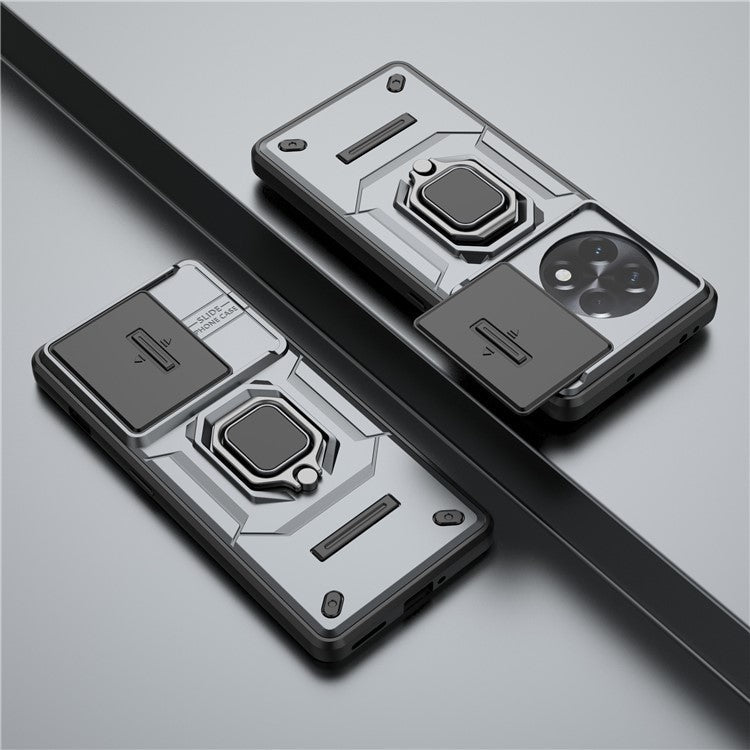 For OnePlus 11R 5G / Ace 2 5G Case Slide Lens Lid PC+TPU Kickstand Cover - Grey