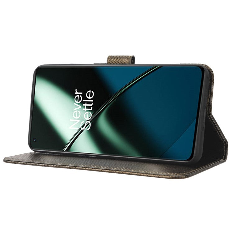 For OnePlus 11R 5G / Ace 2 5G Diamond Texture Stand Cover PU Leather Wallet Shockproof Phone Case - Brown