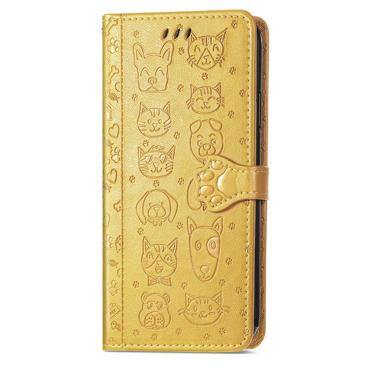 For OnePlus 12 5G Case Cute Cat Dog Imprinted PU Leather Flip Phone Cover - Yellow