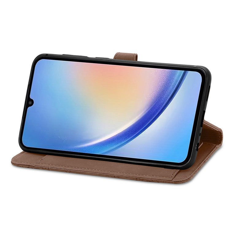 For OnePlus 12 5G Case Leather Card Slots Flower Phone Cover with Wrist Strap - Brown