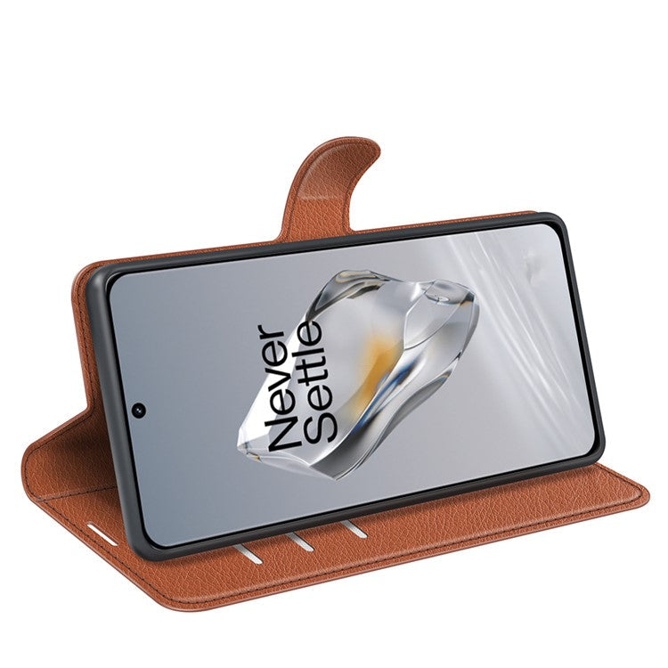 For OnePlus 12 5G Phone Case Flip Wallet Shockproof PU Leather Stand Cover - Brown